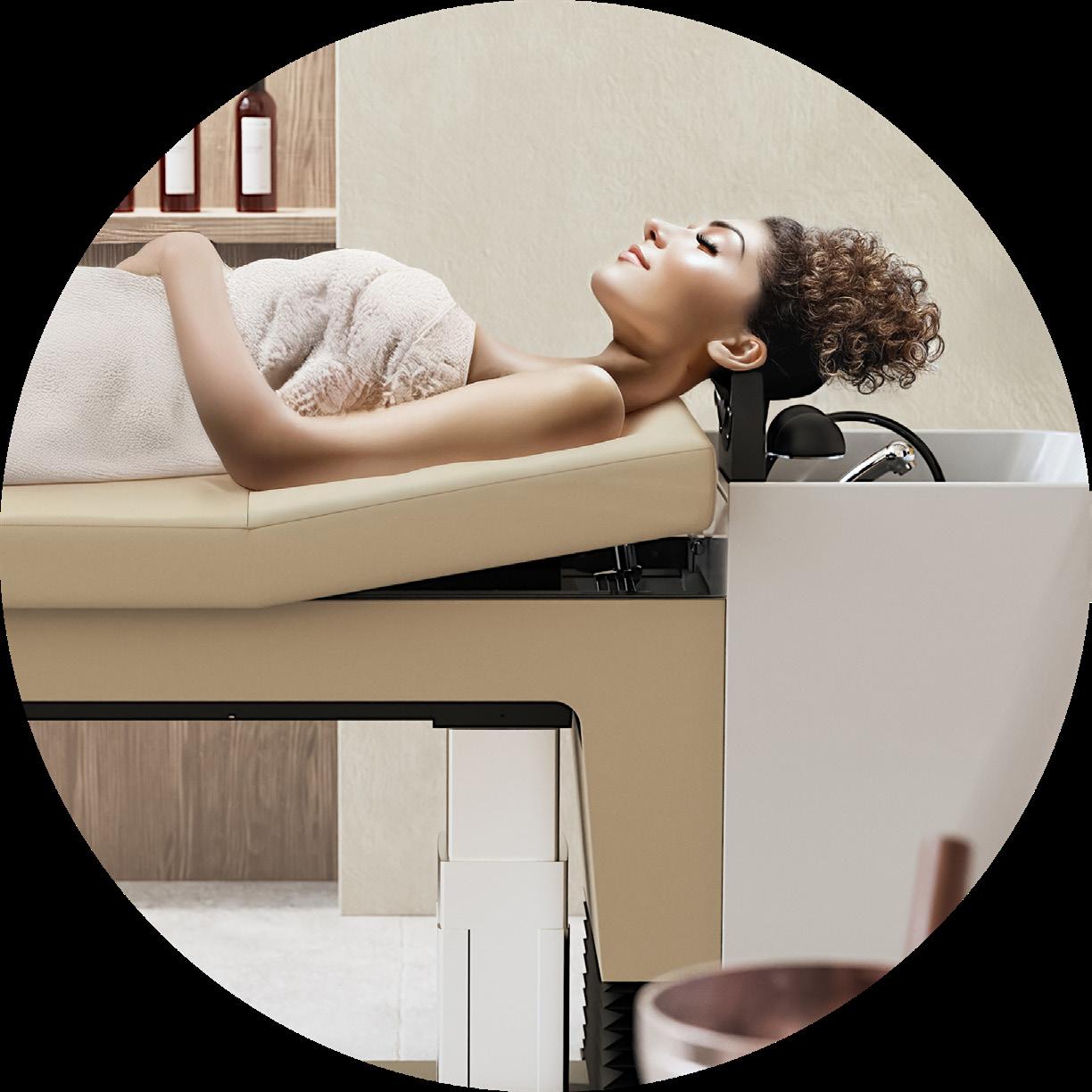 Pamper your customers with THERMIC, a state-ofthe-art heating system that transforms every wash and treatment into an experience of deep relaxation. With two adjustable intensity levels and automatic power off, it guarantees total safety.