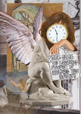 Many people talk about healing their inner child and nurturing them, but I never even had achildhood. I was so limited due to the toxic environments around me that I was almost terrified to make a mistake. If it wasn’t my parents who wanted me to pursue a STEM pathway, it wasthe people at school who judged me for wanting to be creative and expressive. For these collages, I based them on the quote “Your fear of looking stupid is holding you back.” I remember reading this quote on some random Tumblr blog a few years ago and it’s truly one of the few quotes that stuck in my head. I started to, and still do, walk through life with that quote constantly on my mind and it has allowed me to start doing rather than being so hesitant.
