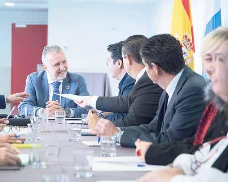 El presidente destacó que Canarias haya quedado exenta del pago de la tasa en el transporte aéreo y por mar entre islas, con la Península y con compensación del coste si se usa combustible ecológico desde la UE, recalcando que esto ha de servir de oportunidad para convertir a las islas en un hub de recarga de energías renovables y en una estación verde en las rutas aéreas por el Atlántico.