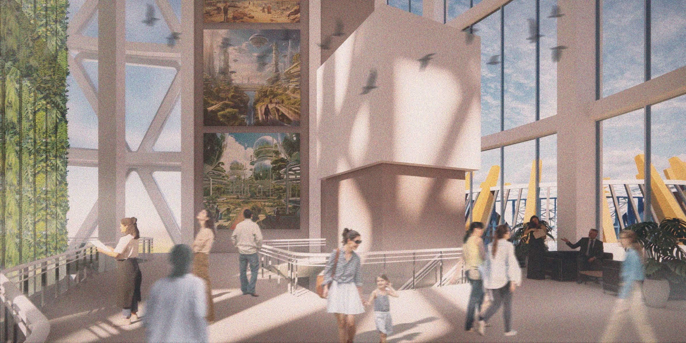 Perspective view interior part of Agro Tower. This shows how the users are experiencing the space