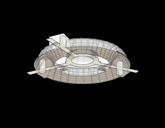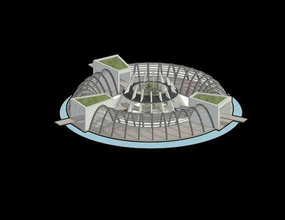 Our Genetically Modified Crop Greenhouse’s fundamental shape is cylindrical with a void in the middle to allow for natural ventilation, which improves aerodynamic efficiency and ensures consistent distribution of sunshine and wind, a characteristic that has proven beneficial in similar constructions. Our design is precisely aligned with the sun’s path to ensure regular sunshine exposure throughout the year, increasing farming output and operating efficiency.