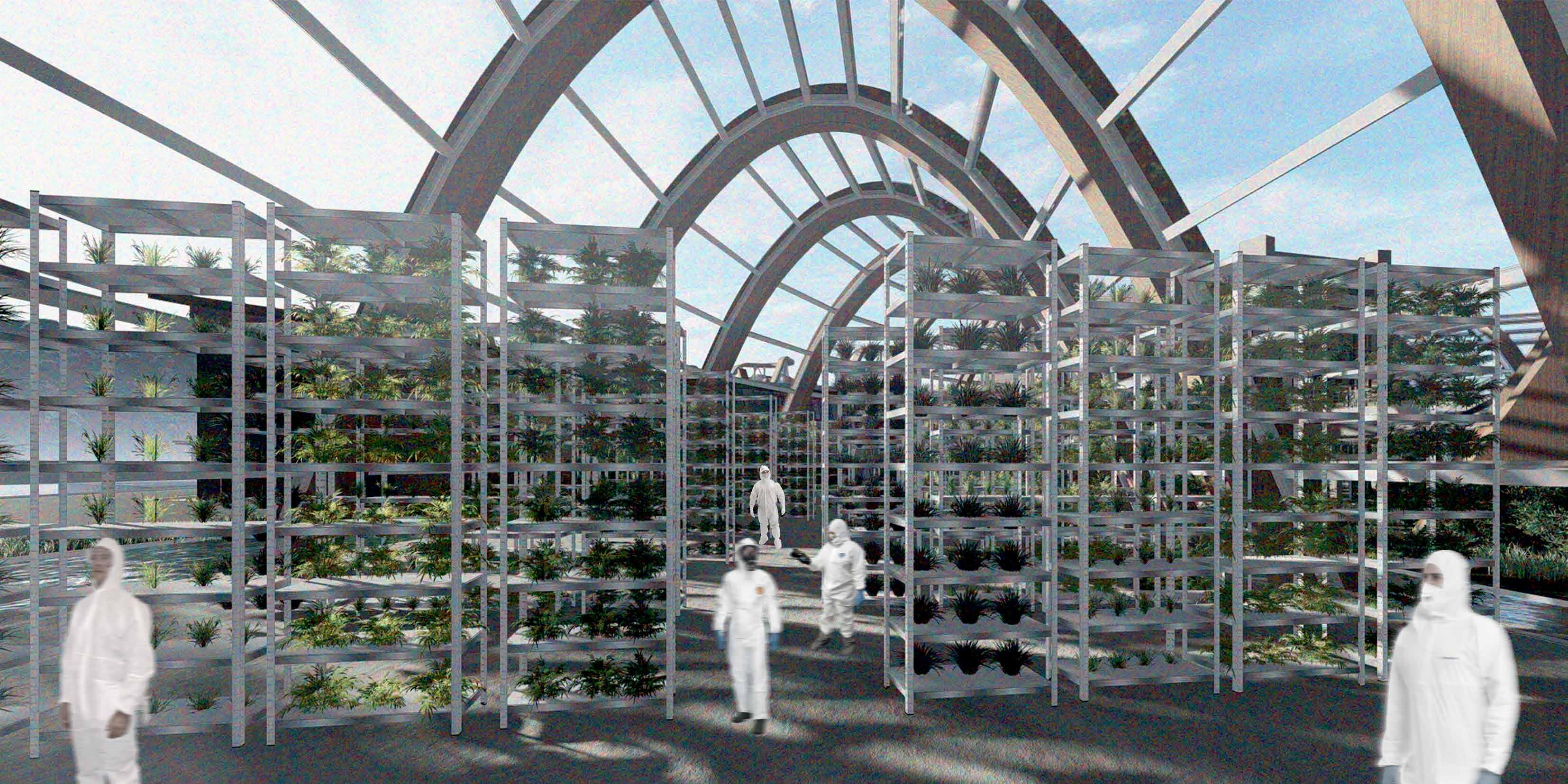 The post-industrial landscape system repurposes places such as quarries into genetically modified research facilities. Phasing begins with a single quarry in Cumbria and subsequently spreads globally. This comprises adaptive reuse of industrial land, boosting sustainable agriculture, and promoting scientific innovation, while taking into account local and global environmental settings and socioeconomic issues.