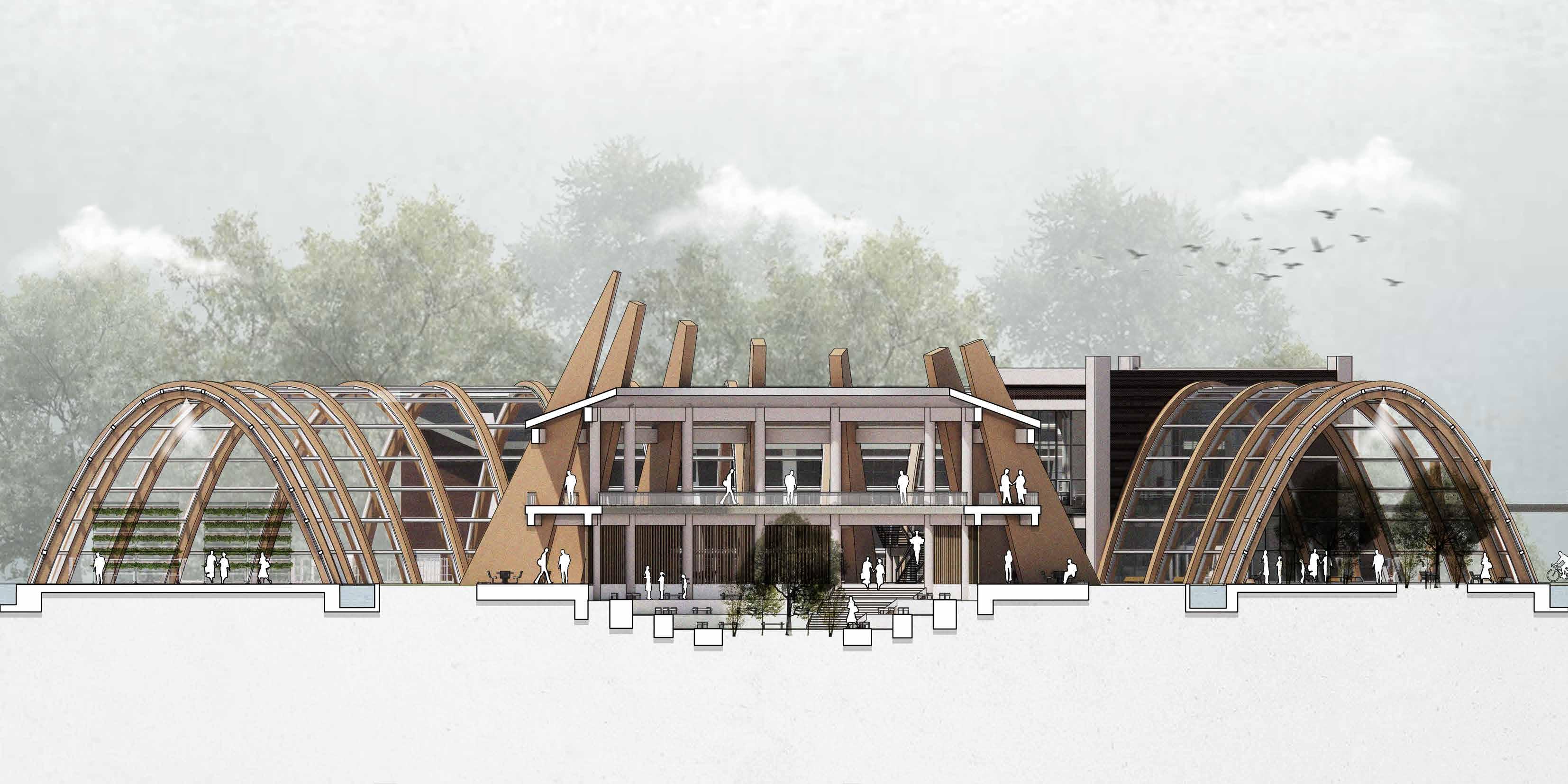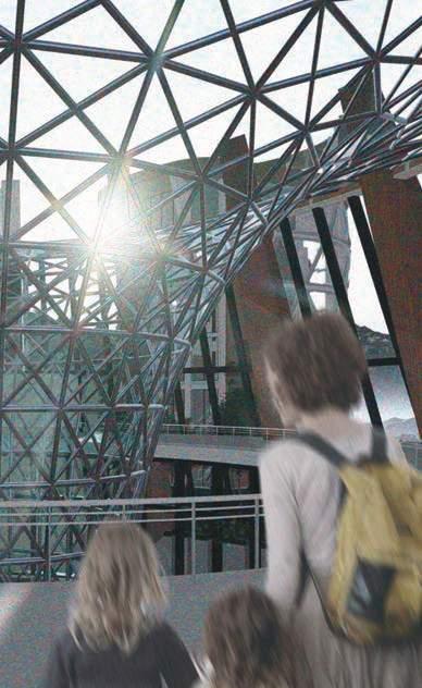 Perspective view that shows relation between the visitors and the space. Which they can experience of viewing the landsccape within the hub