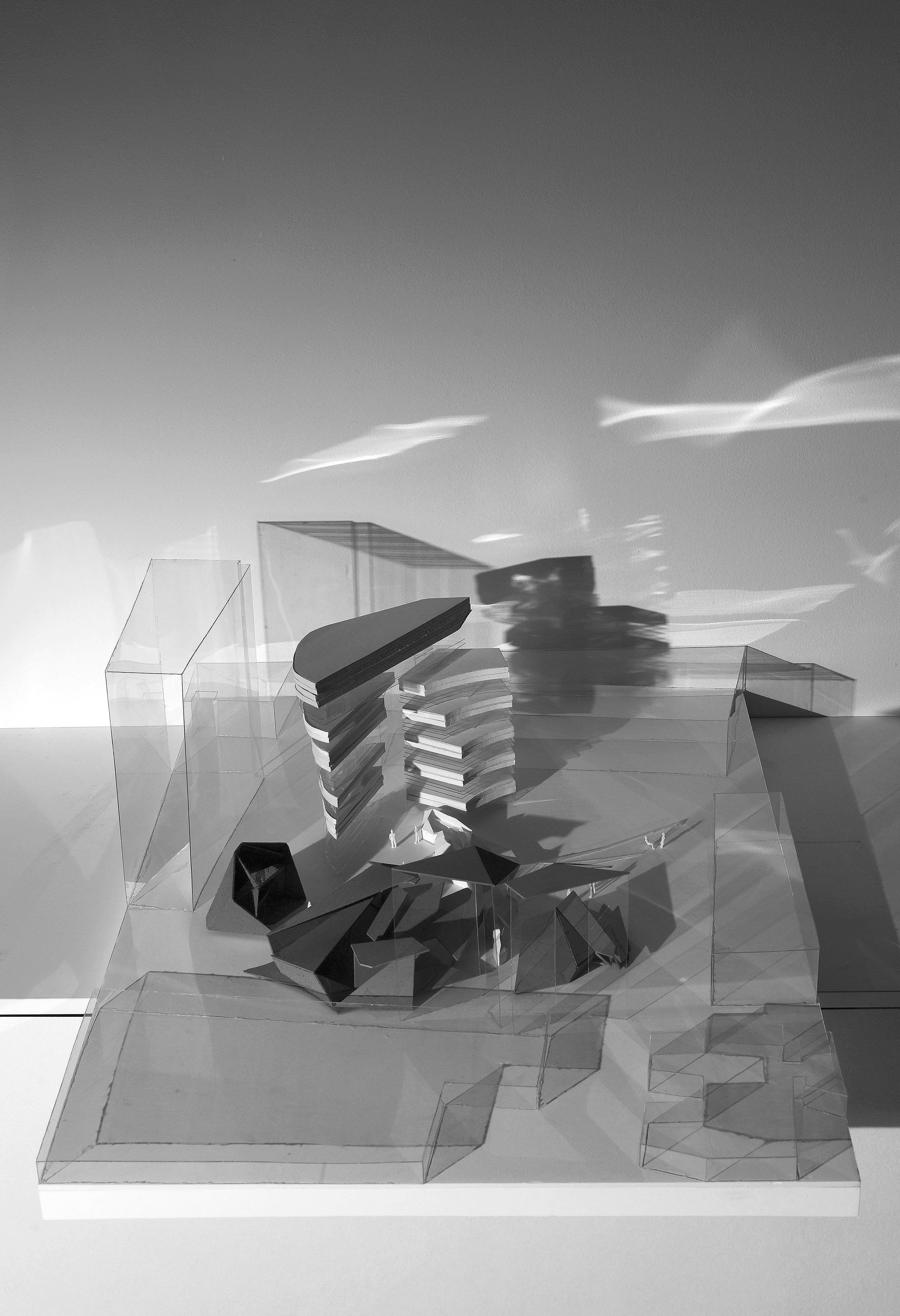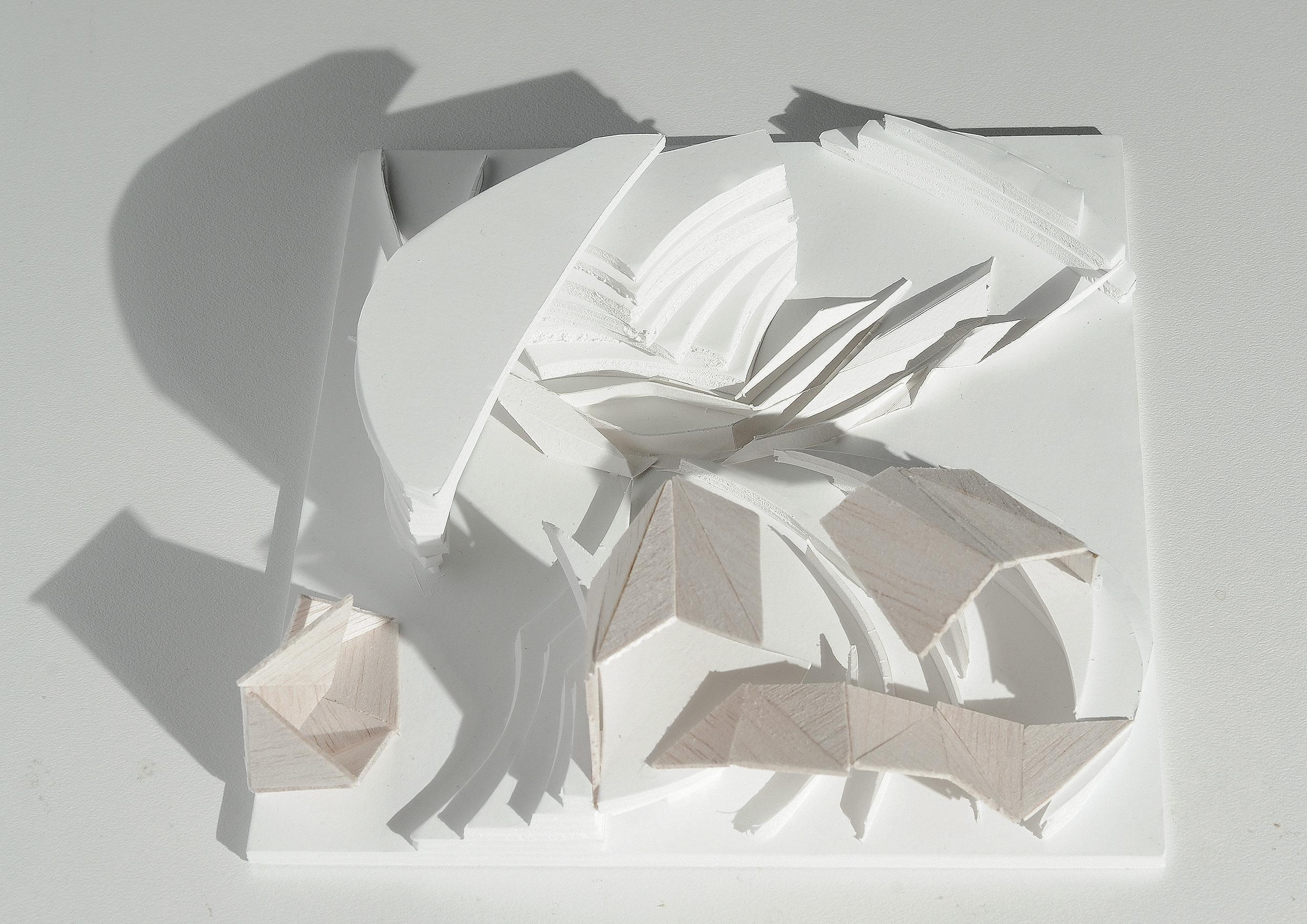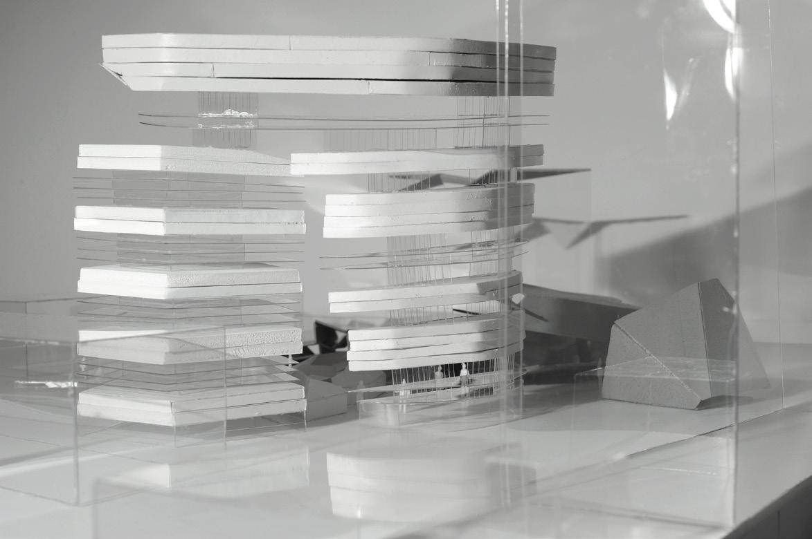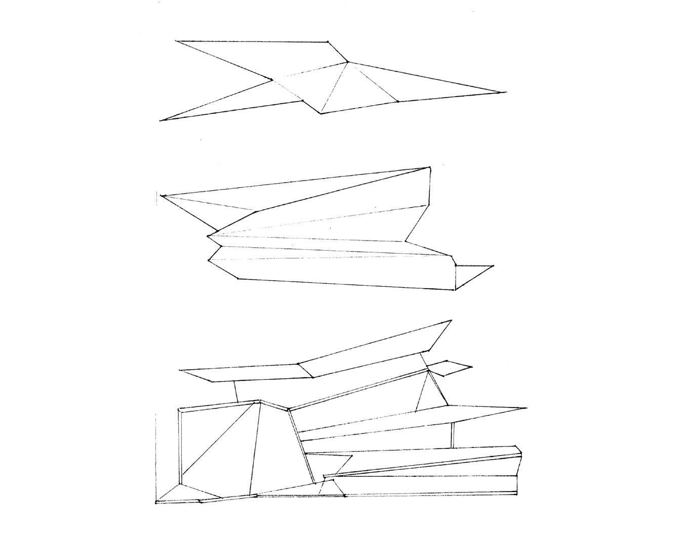 A dynamic composition with subtle fragmented space was developed from this arrangement, emphasizing structural independence and freeform movement.