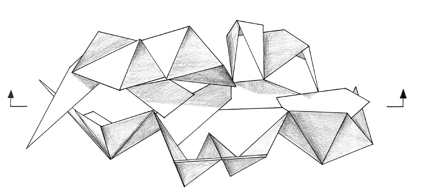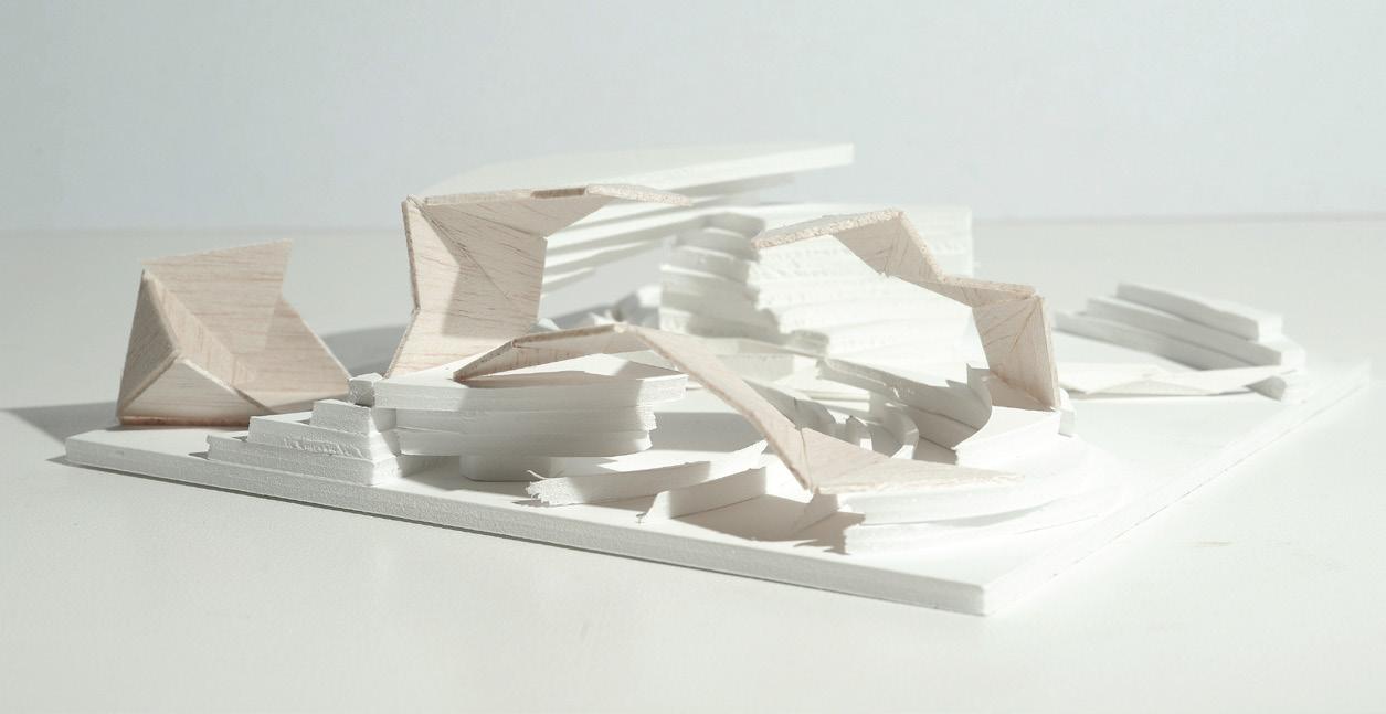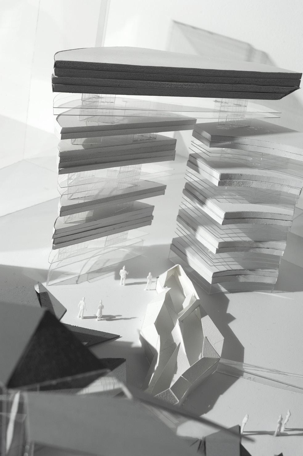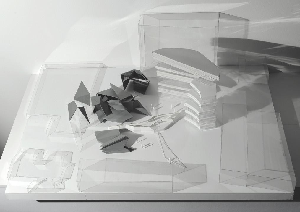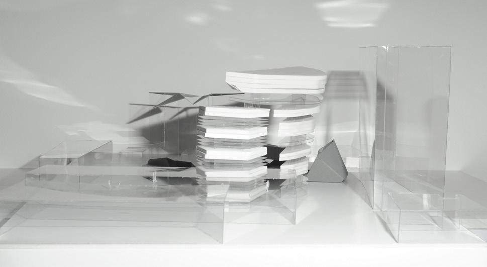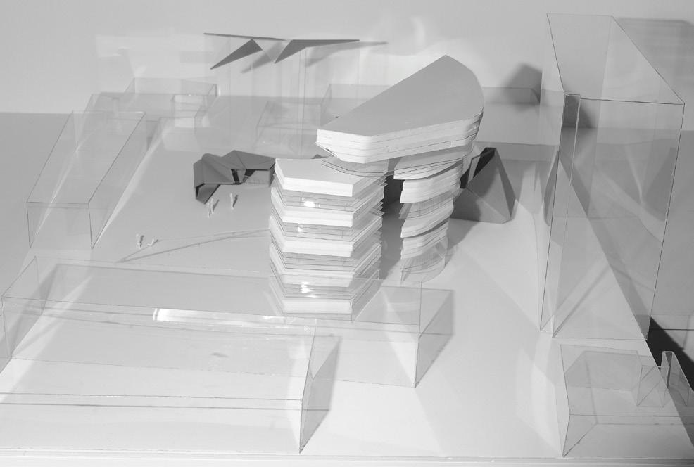 A dynamic composition with subtle fragmented space was developed from this arrangement, emphasizing structural independence and freeform movement.
