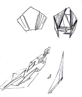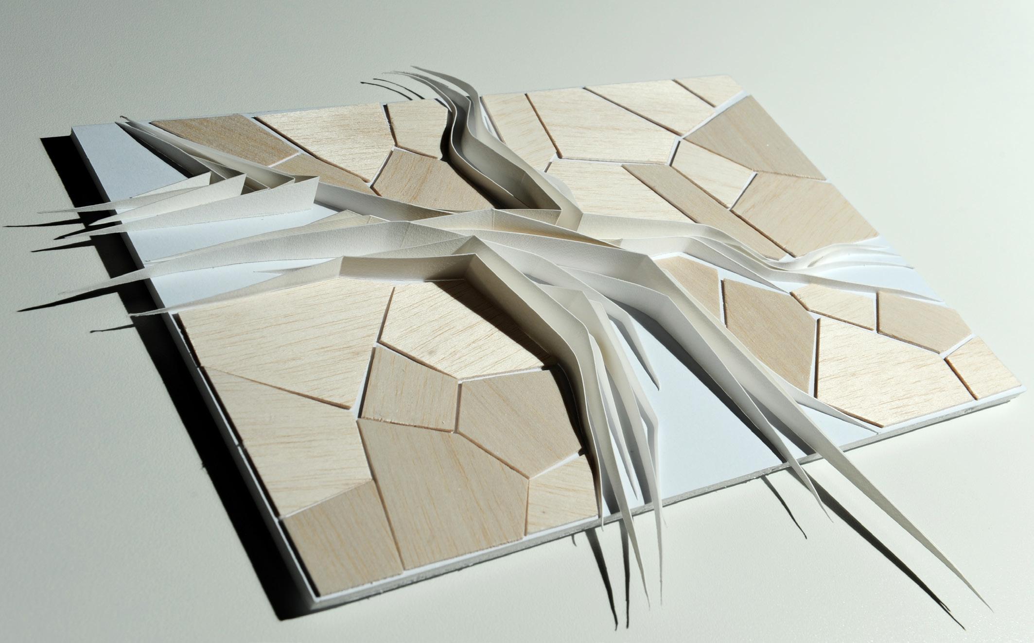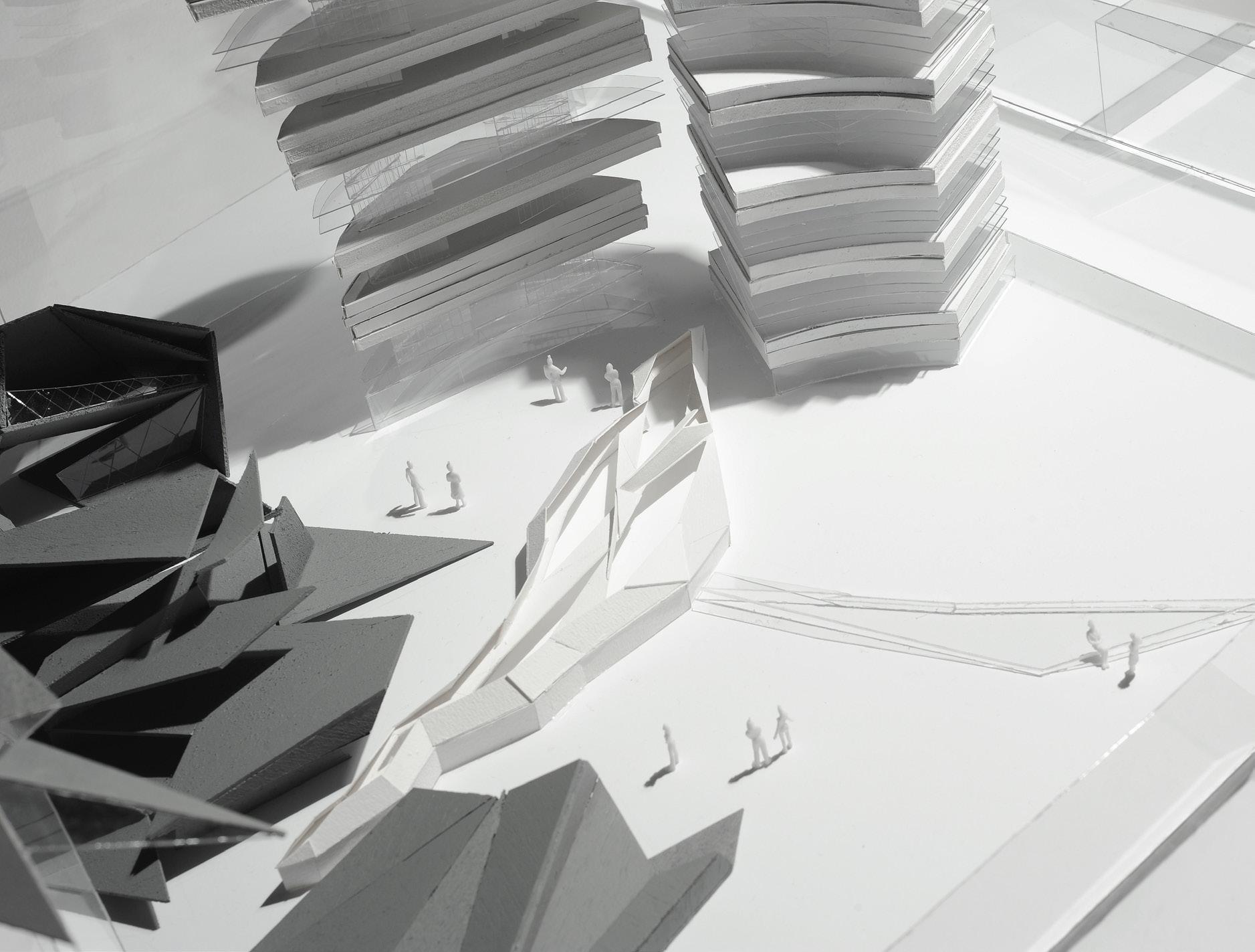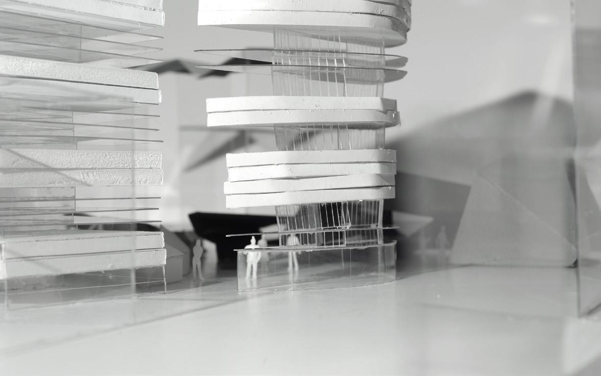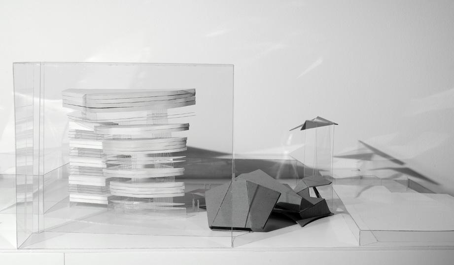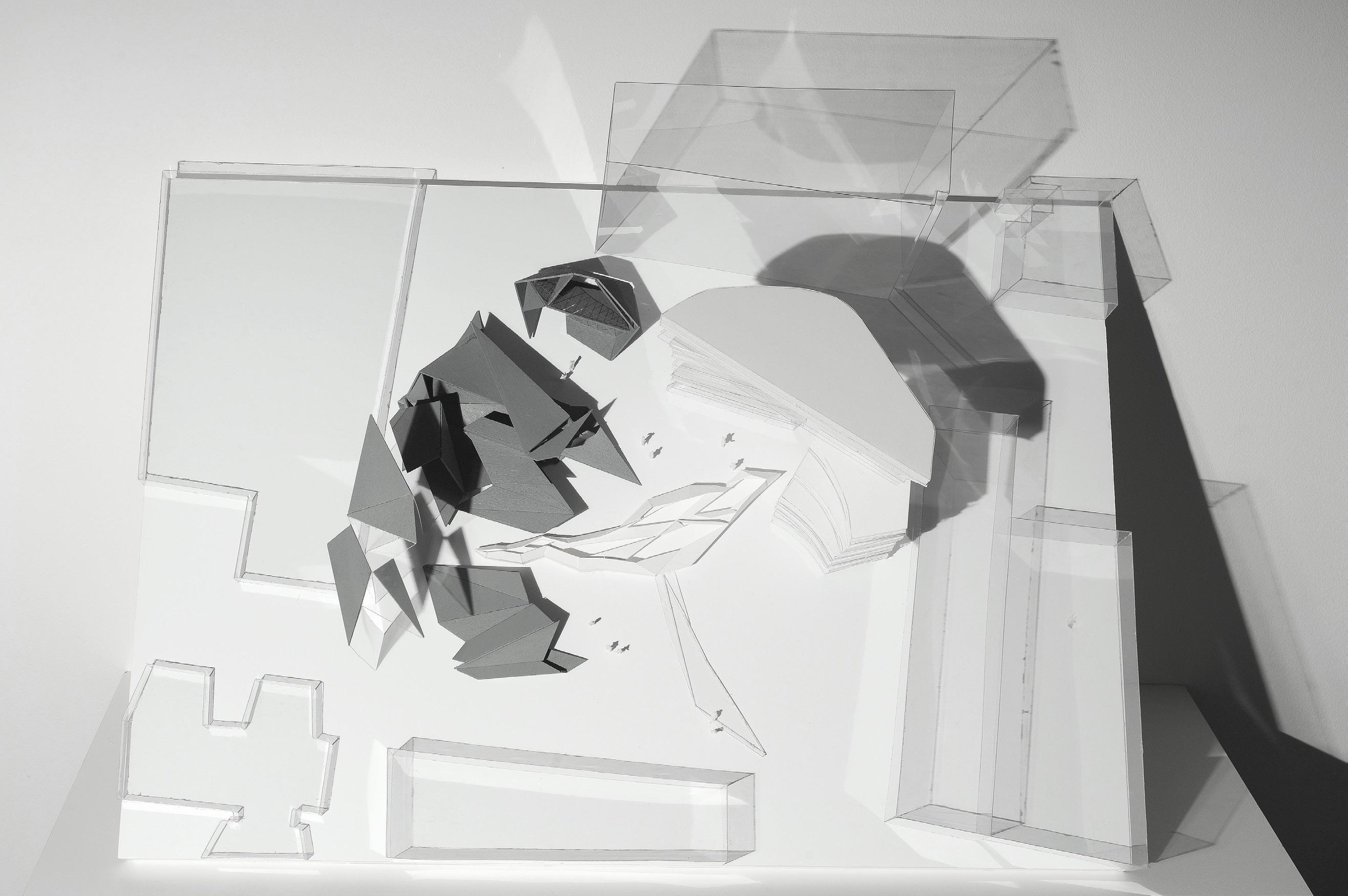 A dynamic composition with subtle fragmented space was developed from this arrangement, emphasizing structural independence and freeform movement.