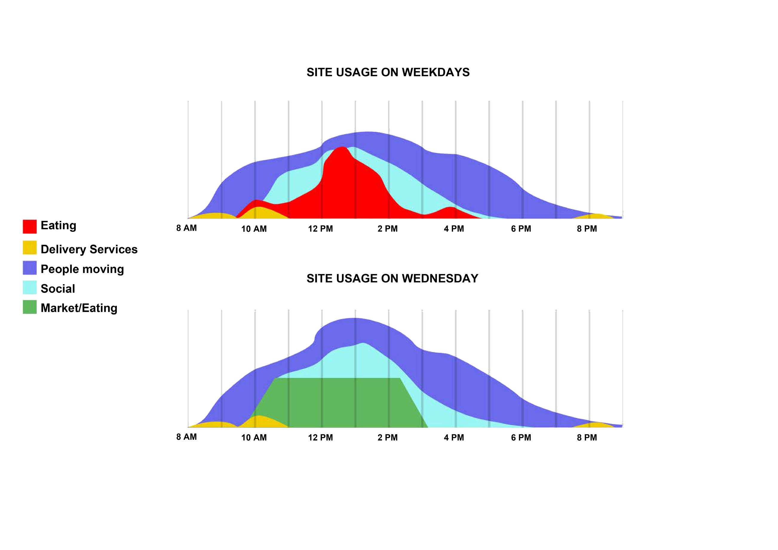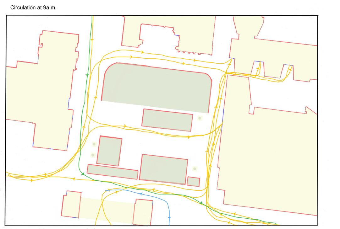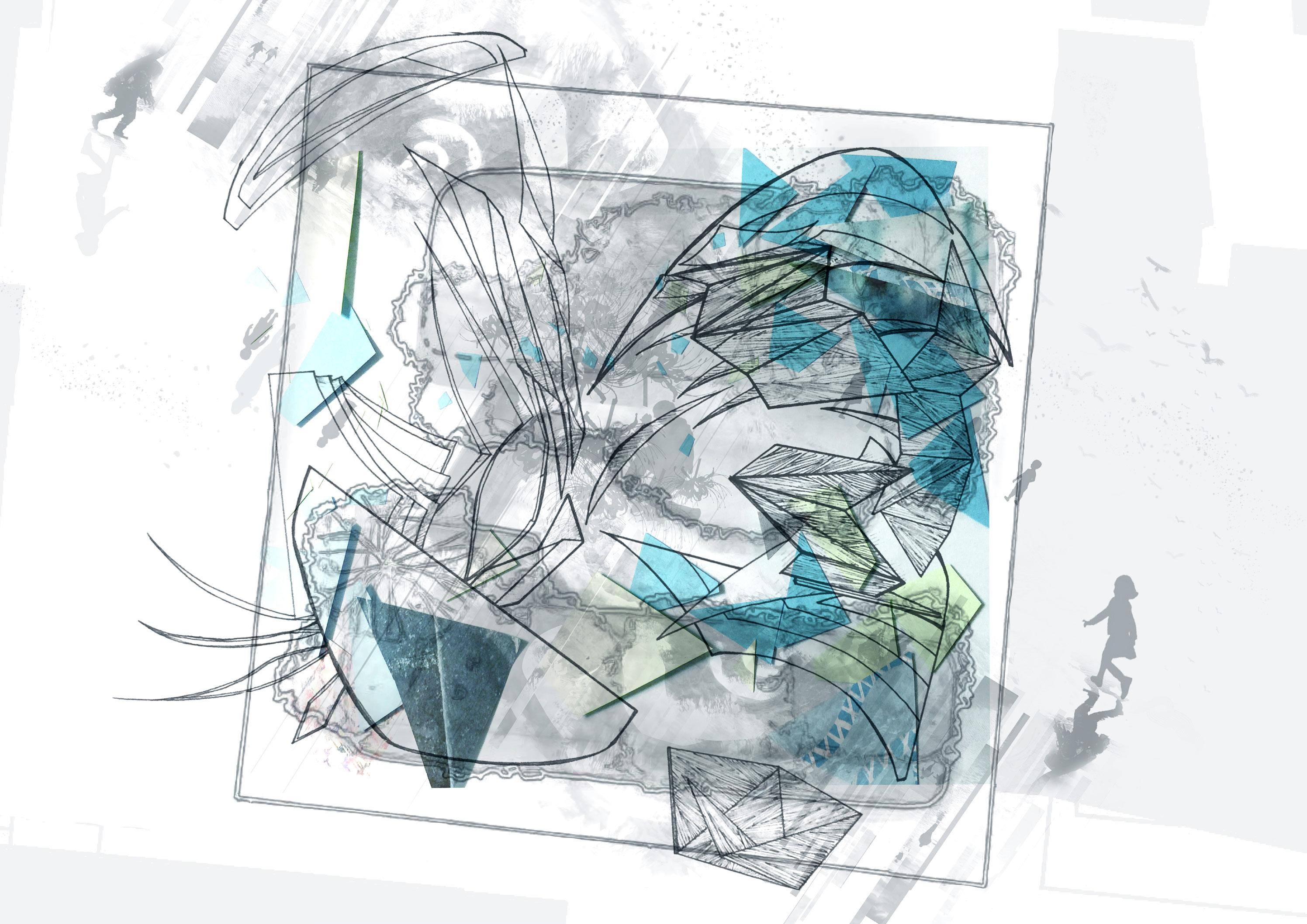 The combination of the spatio-temporal narrative, assemblage plan and a site plan considering the lighter shadows of dawn upon the site. This is all overlaid by another individual collage which is fixated on the fragmented density of cooler areas of the site, population movements and the concentration of activities.