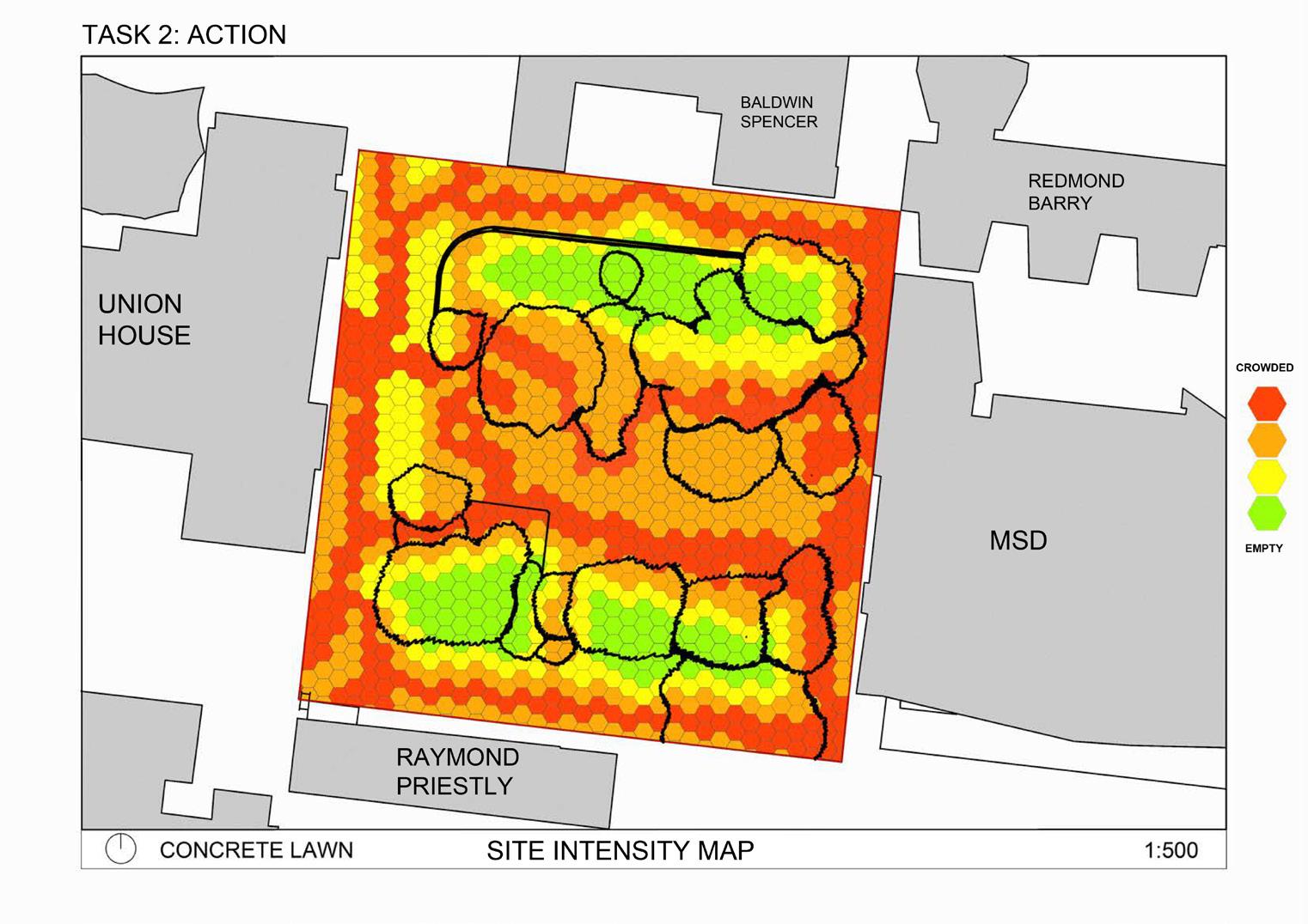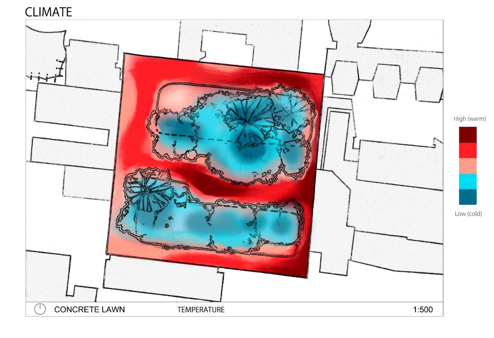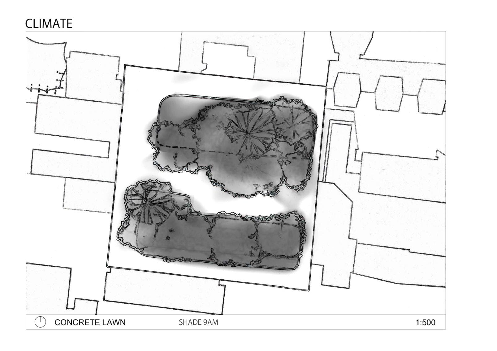 The concrete lawn is located at The University of Melbourne, Parkville, Victoria. The site is in the northern end of the campus and it links a few of the University’s facilities such as the Union House, the Melbourne School of Design and the Raymond Priestly Building. The open space of the concrete lawn provides opportunities for organizing events and carnivals.