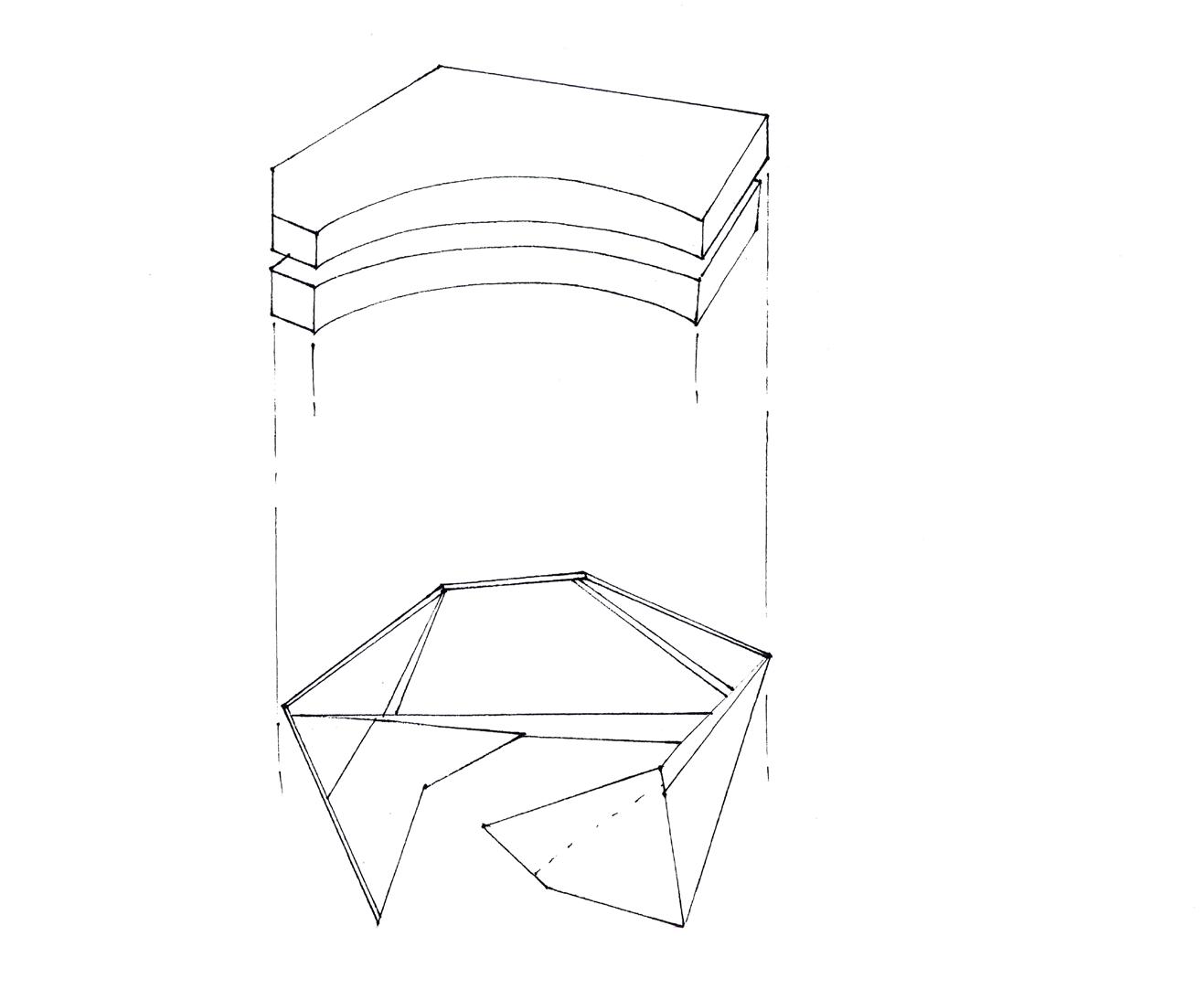 This form recognizes a sense of rigidity to conceal a closed space, yet vulnerability in its opened frame above.
