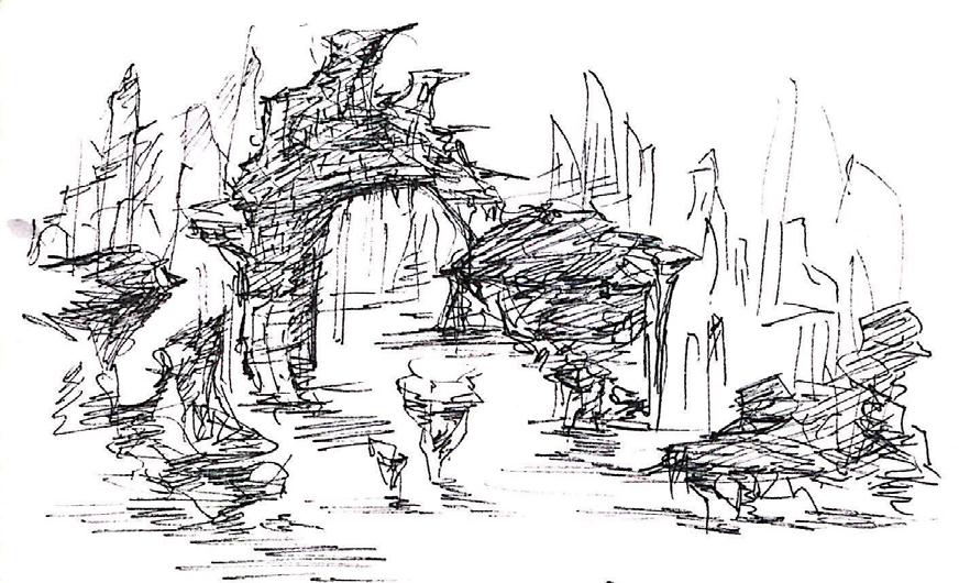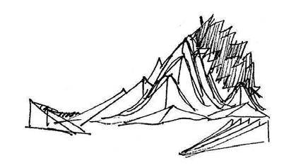 Inspired by the jagged forms of rocky mountains, how they form ‘passes’ through its weathered erosions.
