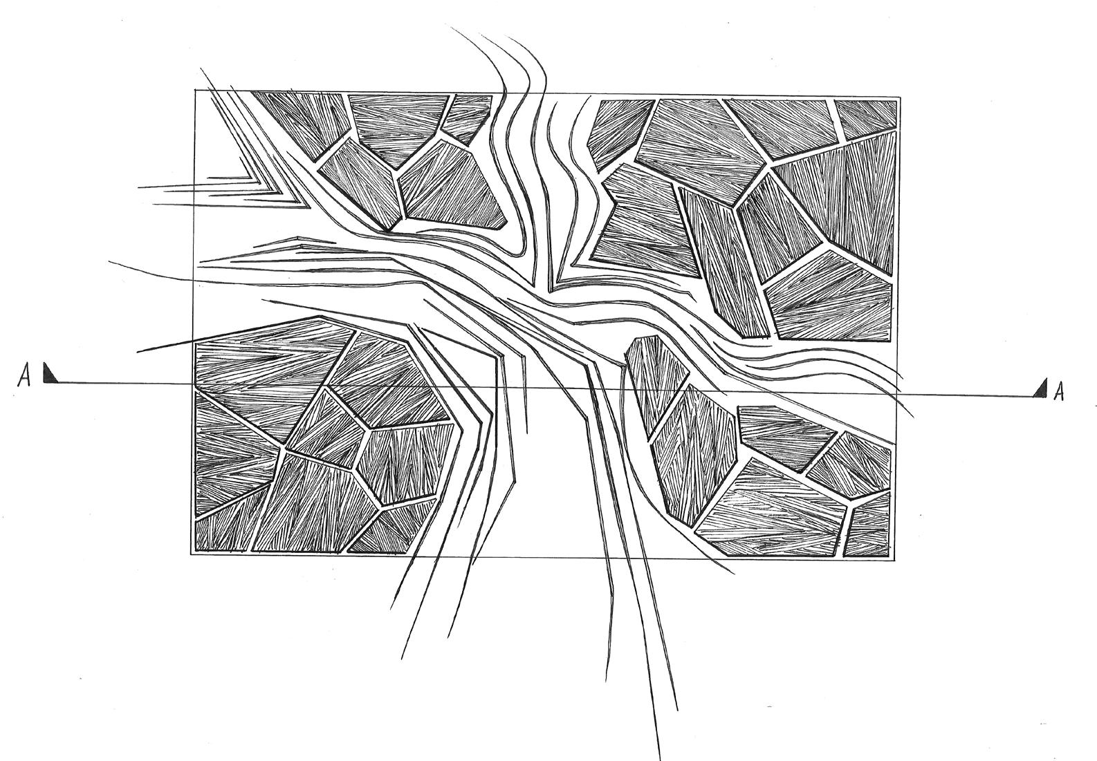 Tributary areas and cracks were created from unequal polygons; however the papered wind serves to emphasize the presence of fissures.