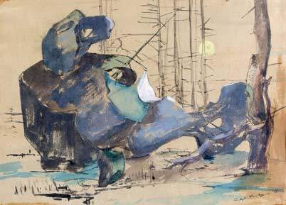 Signed, oil on board, with figurative pencil sketches verso, 41cm by 50.5cm (unframed)