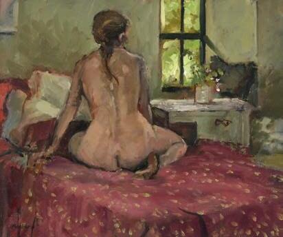 Oil on canvas, with a fur ther nude study to reverse, 50cm by 53cm (unframed)