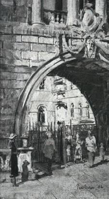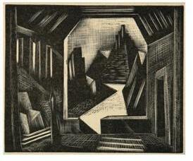 Signed, with the blindstamp for the Fine Ar t Trade Guild, a black and white reproduction, 26.5cm by 36cm