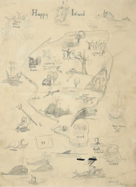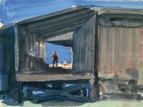 A fine draughtsman, McGuinness gradually began to find his unique ar tistic voice by distor ting imager y to power ful emotive effect. Line, tone, colour and composition were exaggerated and twisted to greater express what it felt like to be in the mines. The figures are quite literally shaped by the mines; they become hunch-backed, rounded like the tunnels, their legs skinny and bowed to echo the arching props, whilst unnatural perspectives leave the viewer feeling off-balance and at the mercy of the sloping, twisting, coffin-like spaces, claustrophobic and vulnerable. Vibrant, almost surreal glazed colours heighten the unear thly, almost nightmare quality of his work. McGuinness lived this world ever y day, filling sketchbooks in brief breaks underground; he was a par ticipant in his ar t not merely an obser ver