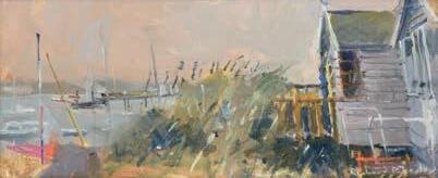 Signed (twice), indistinctly inscribed verso, oil on board, 30cm by 50cm