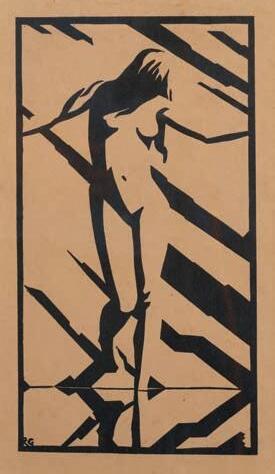 Signed, with blindstamp for the Fine Ar t Trade Guild, a black and white reproduction, 26cm by 35cm