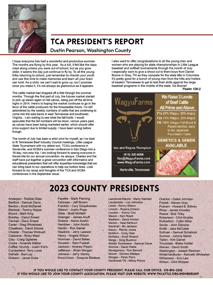 for Club Steers, Shorthorn, Shorthorn Plus, and Blue Roan Heifers www.smokymountainfarmandranch.com Registered Polled Herefords Homozygous Black and Homozygous Polled Bulls & Heifers for Sale (615) 374-7990 PO Box 215 Cross Plains, TN 37049 Phone: 615-478-4483 PO Box 215 Cross Plains, TN 37049 Phone: 615-478-4483 billymjackson@aol.com Farms & Businesses to consider for your needs 865-617-2635 Kathryn Ingram 423-337-1383 24
