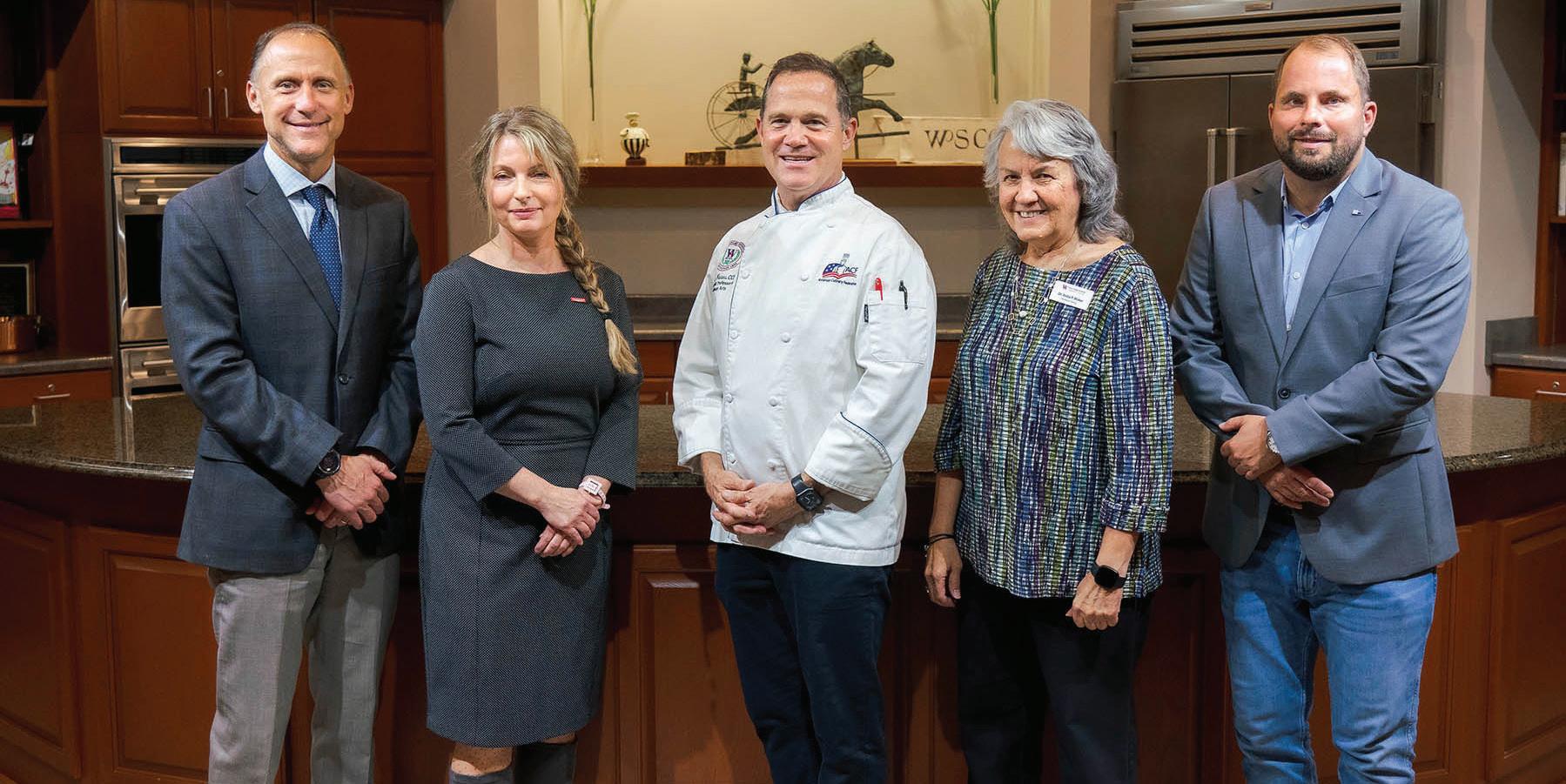 Walters State Community College announces the addition of a butchery program. From left are Dr. Tony Miksa, president of the college; Astrid Friedrich of the Chamber of Skilled Crafts of South Thuringia, Germany; Chef Joe Cairns, head of the Maples Institute for Culinary Arts at Walters State; Dr. Anita Ricker, assistant dean of workforce development at the college; and Tobias Bolle, with the Association of Chambers of Commerce for Service and Industry, Germany.