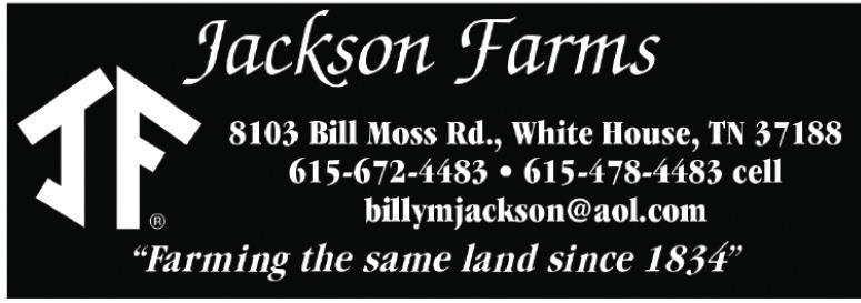 25 for Club Steers, Shorthorn, Shorthorn Plus, and Blue Roan Heifers www.smokymountainfarmandranch.com Registered Polled Herefords Homozygous Black and Homozygous Polled Bulls & Heifers for Sale (615) 374-7990 PO Box 215 Cross Plains, TN 37049 Phone: 615-478-4483 PO Box 215 Cross Plains, TN 37049 Phone: 615-478-4483 billymjackson@aol.com Farms & Businesses to consider for your needs 865-617-2635 Kathryn Ingram 423-337-1383