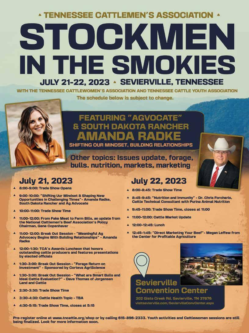On June 11, 2023, over the counter (OTC) antibiotics for animals will require a prescription from your veterinarian. The Tennessee Cattlemen’s Association encourages producers to prepare by talking to a veterinarian, establishing a Veterinarian-Client-Patient Relationship (VCPR), scheduling routine visits with a veterinarian, and implementing treatment plans. For more information visit, www.ncba.org/producers/ updated-antibiotic-guidelines.
