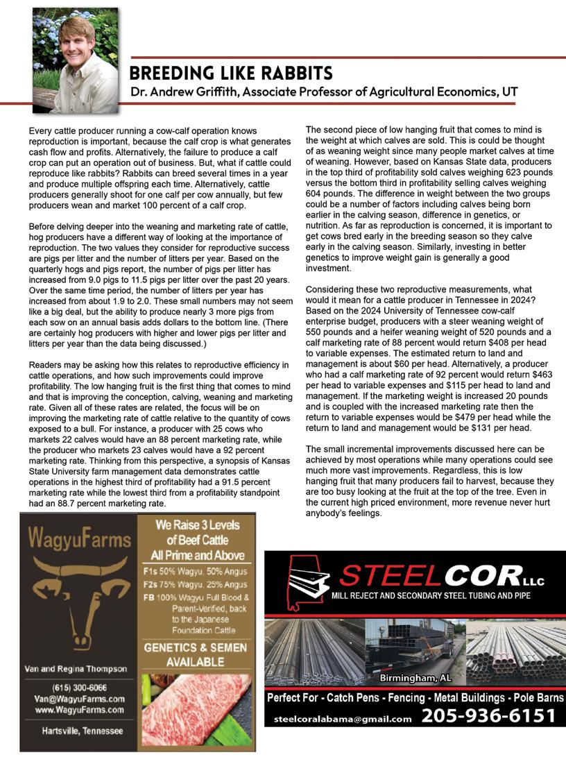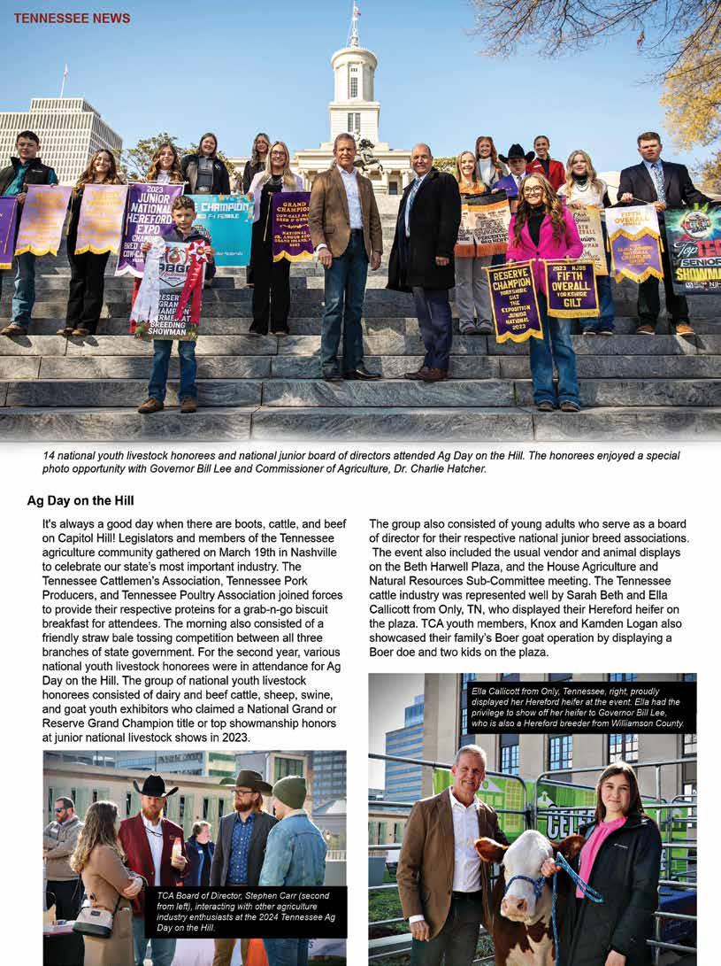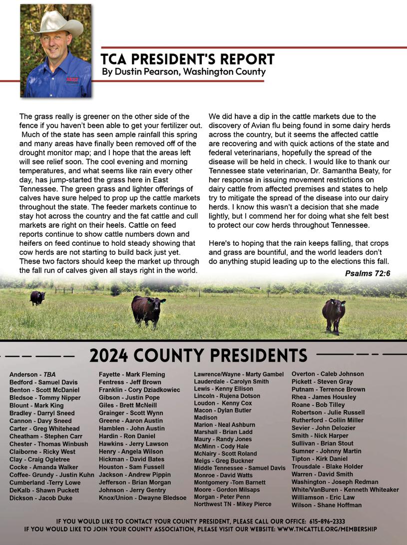 There are two divisions for the Tennessee Cattlemen’s Association Outstanding Youth Award: junior and senior. Participants are judged based on the magnitude of their involvement and accomplishments in the cattle industry, leadership and participation in the industry, community service, and response to the essay question. Award winners receive a cash award and trophy belt buckle sponsored by Luke Teeple and Oakdale Farms. The 2024 award application will be available in the September issue of the Tennessee Cattle Business magazine.