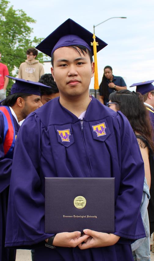 VINCENT LIN (’24) returned home to Nashville after graduating from Tennessee Tech in the spring of 2024 with his bachelor’s degree in computer science and is pursuing career opportunities in software and web development. Regarding his academic achievements at Tech, he said, “I didn’t aim for a 4.0; it was simply the outcome of doing my best in my studies. I focused on understanding the ideas rather than just memorizing what was taught. Being open to asking for help also played a big role.”