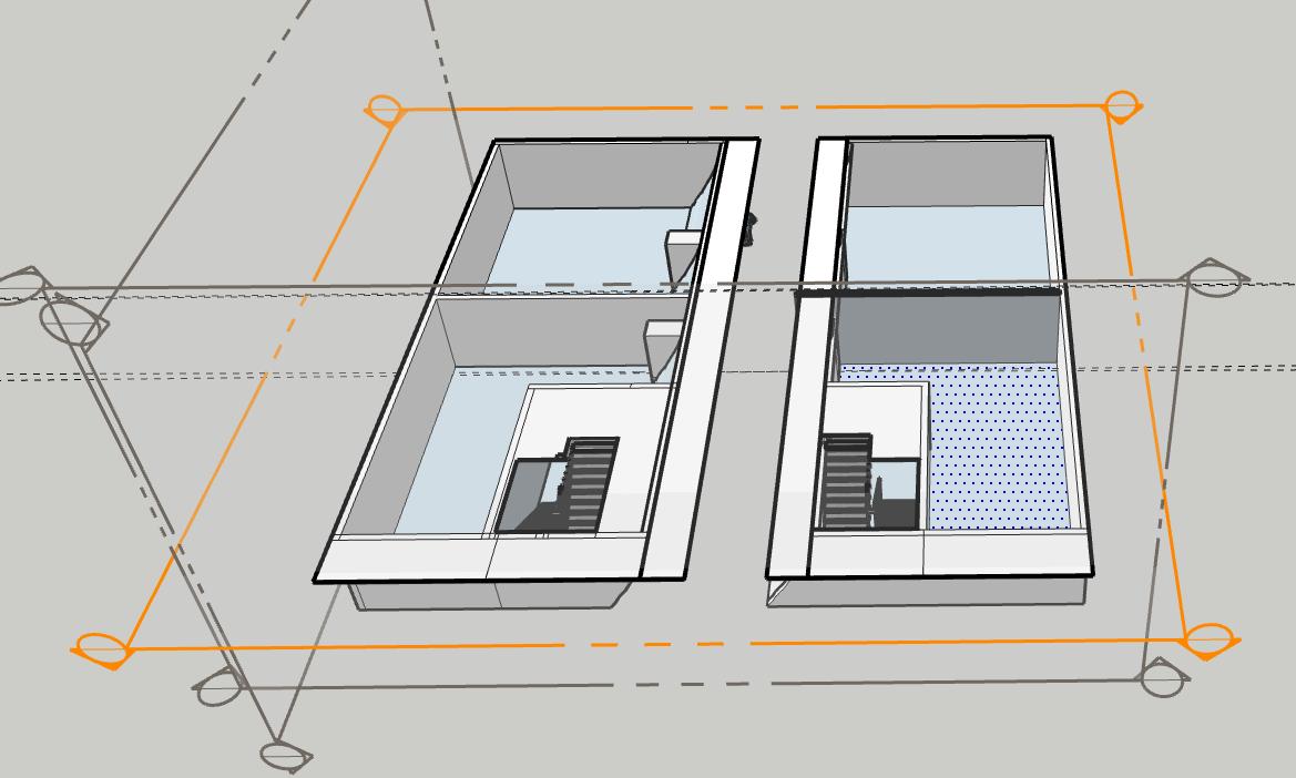 To gain a deeper understanding of how my idea would like in a physical form, I decided to produce a simplified 3D model to scale with people. It is a visual representation of the process of developing my conceptual final idea. This has also helped me visualise any potential issues with the design, for example the space taken away by the gap. As shown before to deal with this the gap could be used as an external staircase or as a hallway.