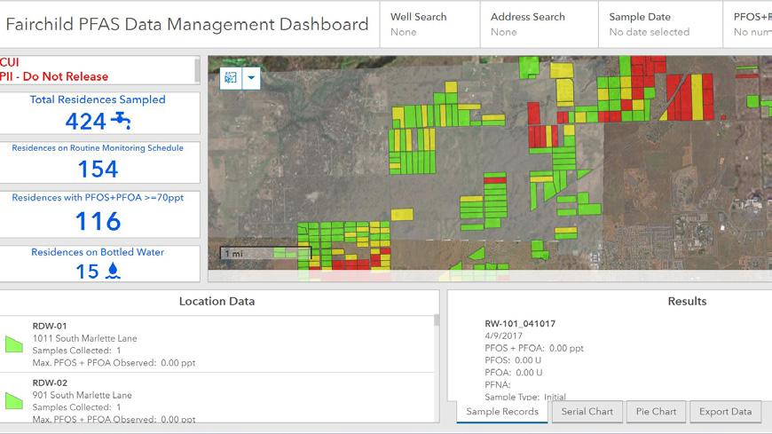 As the principal provider of technical services for both the Air Force Civil Engineering Center (AFCEC) and Air National Guard Readiness Center (ANGRC) PFAS Investigation and Response Programs since 2016, Tehama provides expert federal programmatic PFAS data management and technical solutions. Tehama developed the DoD’s largest and most comprehensive geospatial database of all PFAS investigation and response data across United States Air Force (USAF) Active/Reserve/Space, Air National Guard, and Base Realignment and Closure (BRAC), which is utilized for proactive program management, interpretation, reporting, and predictive analysis. Through centralized geospatial data management dashboards, Tehama provides federal clients with real-time and accurate data to efficiently reference and analyze PFAS data, greatly increasing situational awareness and effectiveness of strategy, planning, and response efforts. Tehama has developed multiple complex programmatic and installation-specific data dashboards to maintain over 20 million records, including PFAS site prioritization, investigation statuses and schedules, analytical chemistry, land use, response actions, treatment technology, compliance records, hydrogeologic parameters, well construction, site/location, and monitoring data. Data streams can evolve in real-time to meet new program requirements and strategic planning. Tehama’s innovative PFAS programmatic environmental data management technology has helped shift federal clients’ PFAS response from a reactive to a successful and efficient proactive management approach.