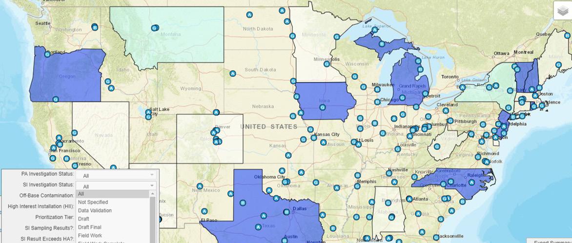 Tehama utilizes proactive program-management geospatial dashboards to support federal clients in site identification and prioritization, systematic implementation, and providing site-specific and programmatic risk assessments. This approach allows federal clients to more rapidly and accurately streamline initial site assessments, capture current knowledge of historical and ongoing uses of perand polyfluoroalkyl substances (PFAS), and develop a critical path forward in their program’s approach.