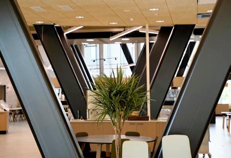 Kattorakenteessa ja tekniikassa oli jonkin verran yhteensovittamista. ”Kaikki hormit ja putket piti mahduttaa sinne kattoon, jossa on teräsrakennetta. Tarkalla 3D-mallinnuksella löysimme ratkaisun, joka onnistui sekä teräsrakenteen että tekniikan osalta.”