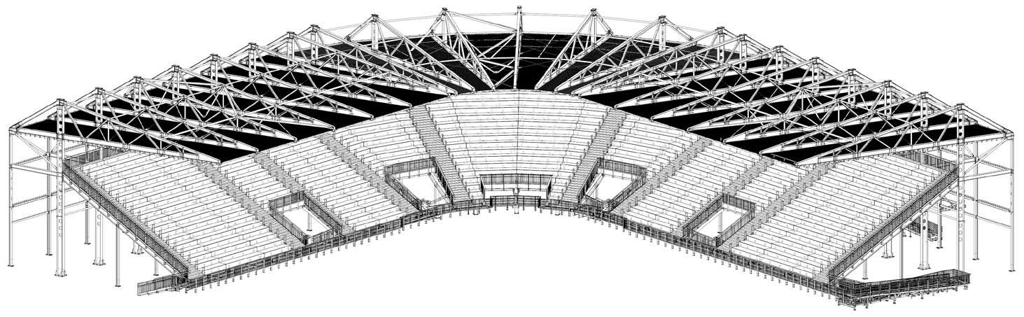Pesäpallostadionin teräsrungon 3D-näkymiä