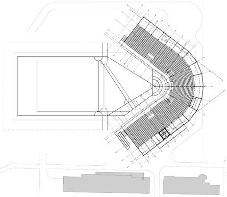 Katsomon istuintasot ja portaat on tehty muotoon taivutetusta kuumasinkitystä kyynellevystä