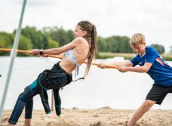 Uczestnicy półkolonii mieli okazję spróbować wielu aktywności – od wodnych szaleństw na wyciągu wakeboardowym, przez zabawy na plaży, po gry integracyjne i zajęcia sportowe na świeżym powietrzu. To idealne miejsce, by połączyć wakacyjny luz z aktywnym wypoczynkiem. Nie zabrakło także czasu na relaks, wspólne rozmowy i budowanie nowych przyjaźni, które – mamy nadzieję – przetrwają na długo.