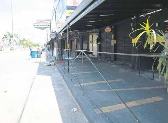 Pedestres sem calçadas e ame aças No Parque São Caetano, na Rua Lions Club, a reportagem flagrou um estabelecimento comercial que utiliza a calçada como extensão para atender aos clientes. No cruzamento das ruas Anita Pessanha e Coro nel Germano de Castro, no en torno da Universidade Cândido