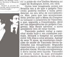 A discussão, então, girou em torno da legitimidade da posse do vice-presidente, José Sarney, visto que uma corrente entendia que o maranhense só poderia assumir se Tancredo, antes, tivesse sido empossado. A solução foi permitir que Sarney ascendesse ao Palácio do Planalto, interinamente, até a recuperação de Tancredo.