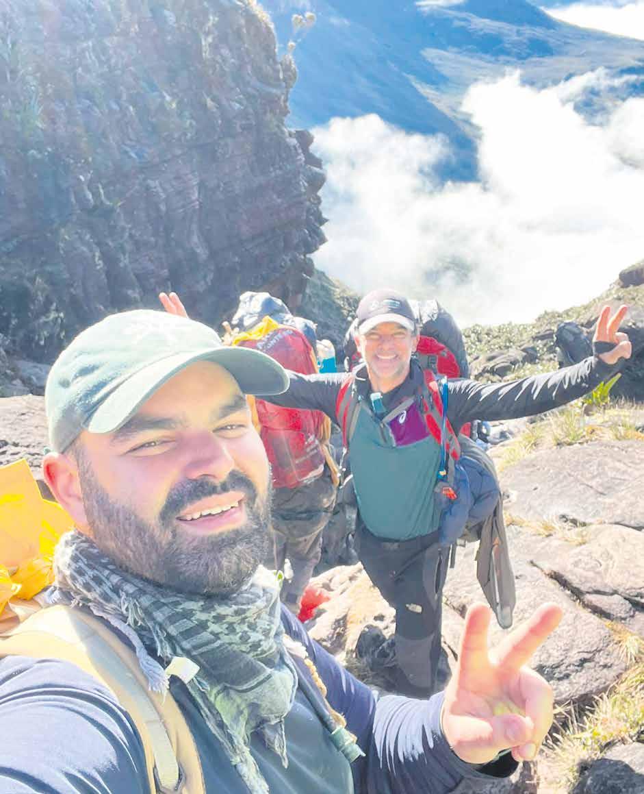 Felipe Paes, sobrinho de Fabio, aceitou o convite feito pelo tio e também embarcou nessa expedição em que o percurso de ida e volta ao topo foi de 85 km de trekking. Para ele a sensação é indescritível. “Tudo que é simples em nosso dia a dia me foi posto à prova naquele lugar. Comer, beber água, utilizar o banheiro, tomar banho e até mesmo dormir exigia muito, pois sempre havia um obstáculo a superar. Tudo lá é difícil, principalmente por ter que carregar montanha acima uma mochila com 15 kg em média. “Quando você sobe, muitas vezes agarrados às pedras, a mochila te puxa pra baixo, e quando você desce passando por abismos, ela