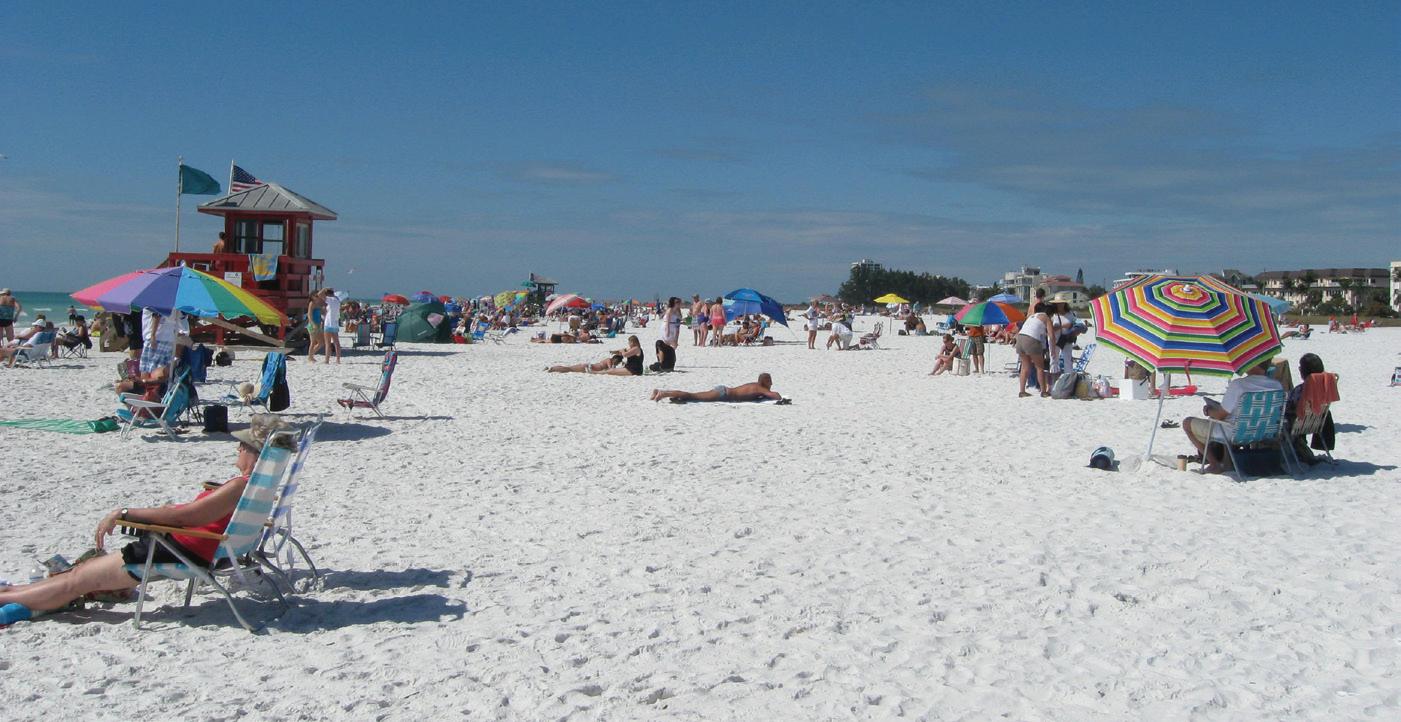 Sarasota is home to Siesta Key Beach, rated #1 beach in 2011. Siesta Key is an eight-mile barrier island, and is blessed with the world’s finest, whitest beaches. It is made up of 99-percent pure quartz crystal, with no fragments of coral or shell which creates a soft, powdery sand much like baby powder. The sand has a magical quality – it never gets hot. Even on the warmest days of summer it won’t burn your feet. The beach is hundreds of yards wide, and even has a picnic area and tennis courts. Most mornings a crowd gathers early for “yoga on the beach.”