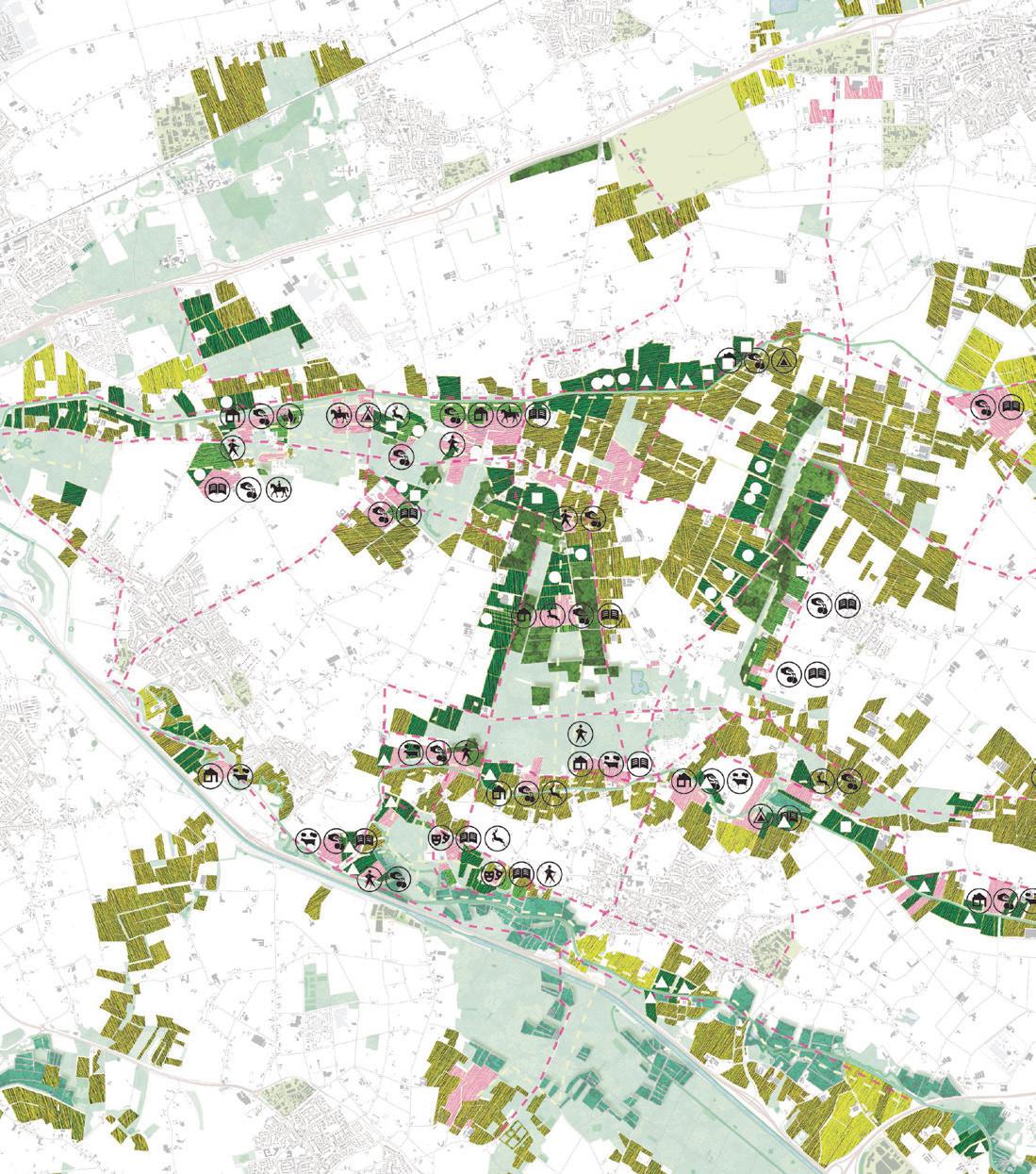 Alternatieven voor een wandelpad door de manege in perceel 2 worden aan de eigenaar voorgelegd om een betere landschappelijke kwaliteit te onderhandelen met een hogere connectiviteit en biodiversiteit. Ook worden de mogelijkheden verkend om een recreatiepark te creëren in het overgangsgebied tussen het woongebied en het polderlandschap.