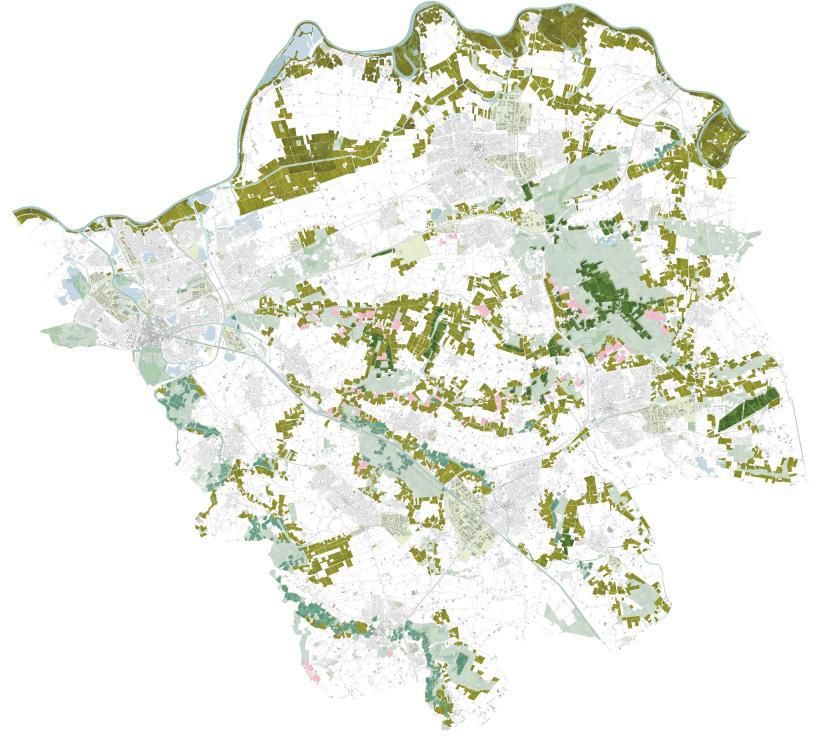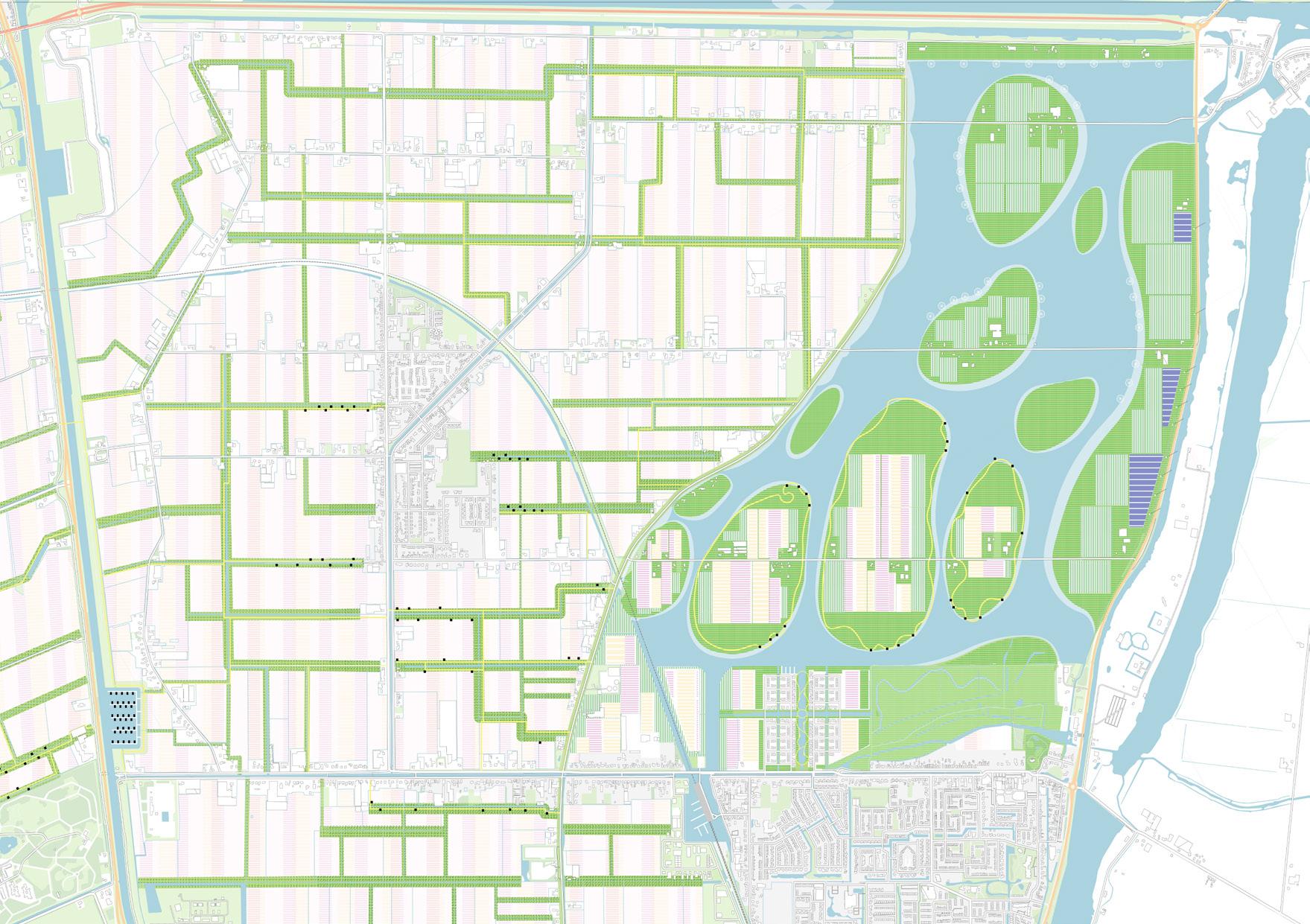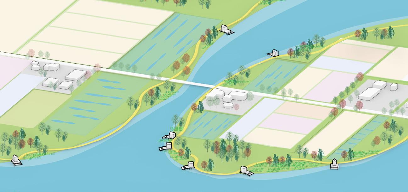 Handled properly, challenges can turn into opportunities. Solutions to these problems create conditions for a healthy and attractive living environment for the new settlements. Water is the core, the approach, the infrastructure, and the context of this project. By establishing a nitrogen buffer system based on the existing spatial structure of the irrigation-drainage water system and making the element ‘water’ more tangible and accessible, the historical and cultural landscape is strengthened. After solving the water-related problems, the water and the landscape offer opportunities for new housing, improved mobility, enhanced nature, and sustainable agriculture. The region is thus shifting towards a more sustainable, climate-proof, and resilient future.