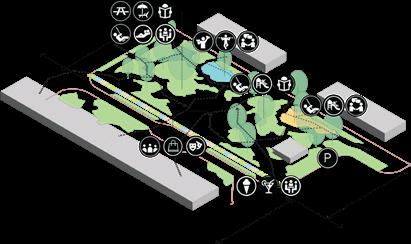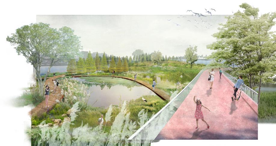 The depoldering creates connection to Amstelmeer , which is a metaphor for the region’s historical intimacy with water. The contrast between the islands’ organic shape and WBZ’s linear structure is a reminder of the local history and culture: from ‘conquering water’ in the past to ‘living with water’ in the resilient future, and also gives the region a new identity.