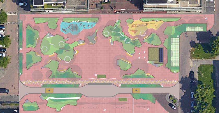 Supported by affordance theory stating that affordance, i.e., the functional attributes of the environment can be directly perceived by people and thus change people’s behavior, this thesis attempts to design an outdoor environment for Kerkrade that provides more affordance to young adolescents’ unstructured physical activity (UPA) behavior with the instructions of salutogenic design principles. It is an attempt to bridge landscape design and health promotion.