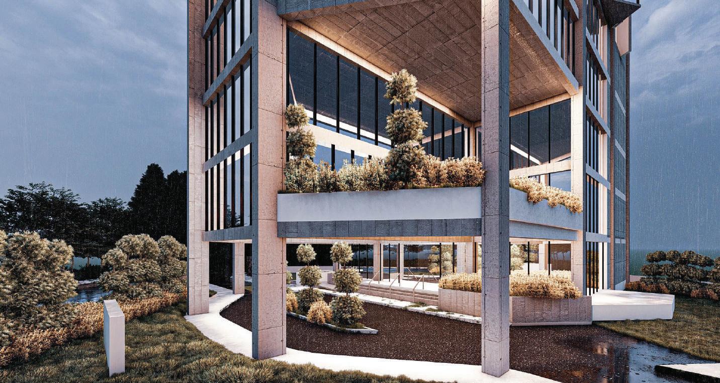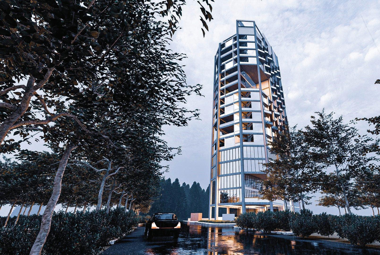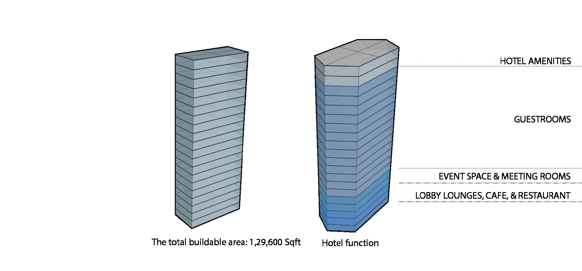 The project comprises of diagrid strcuture for various reasons. Aside from its aesthetic value, a diagrid structure has a number of advantages structurally and environmentally. When compared to a brace frame structure, diagrid can save up to 20% of the steel. When glass panels are integrated with a diagrid, a tremendous amount of light enters the interior spaces. It also eliminates the requirement for columns on the interior and exterior spaces, allowing for more innovative floor layouts.