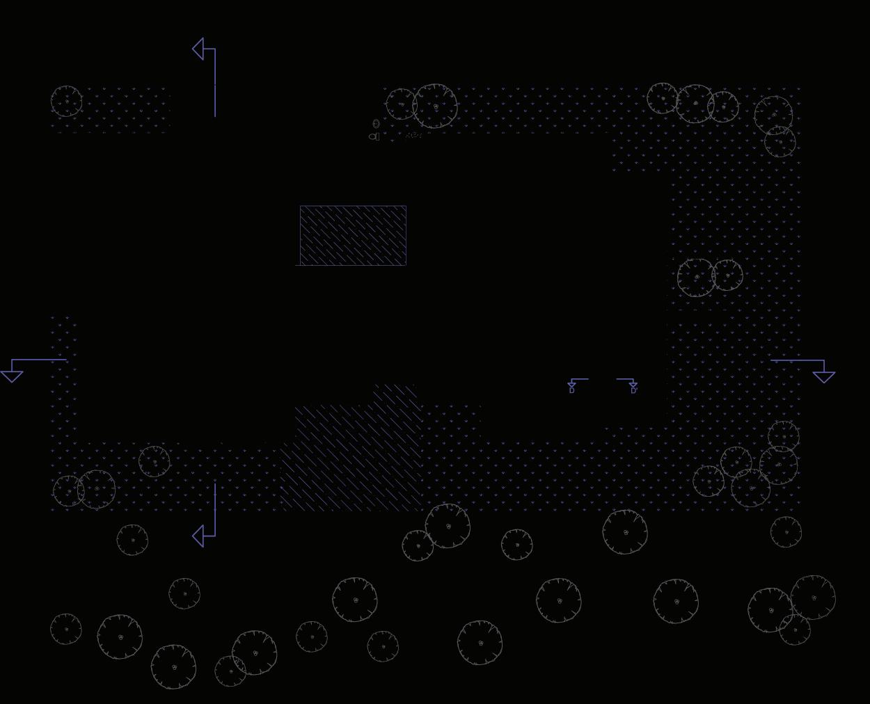 To create a breezeway through the blocks, stepped-like 'newgrounds' were developed.