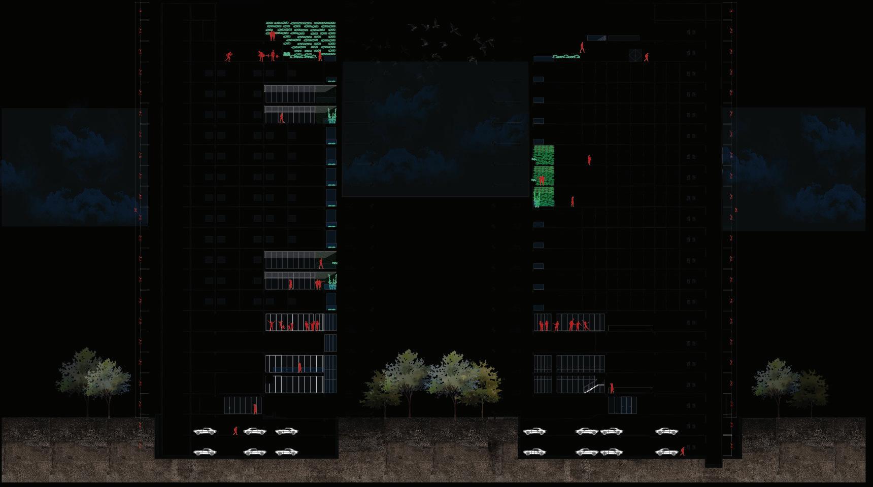 Amenities/ Gathering spaces are distibuted throughout the building from ground level to rooftop.