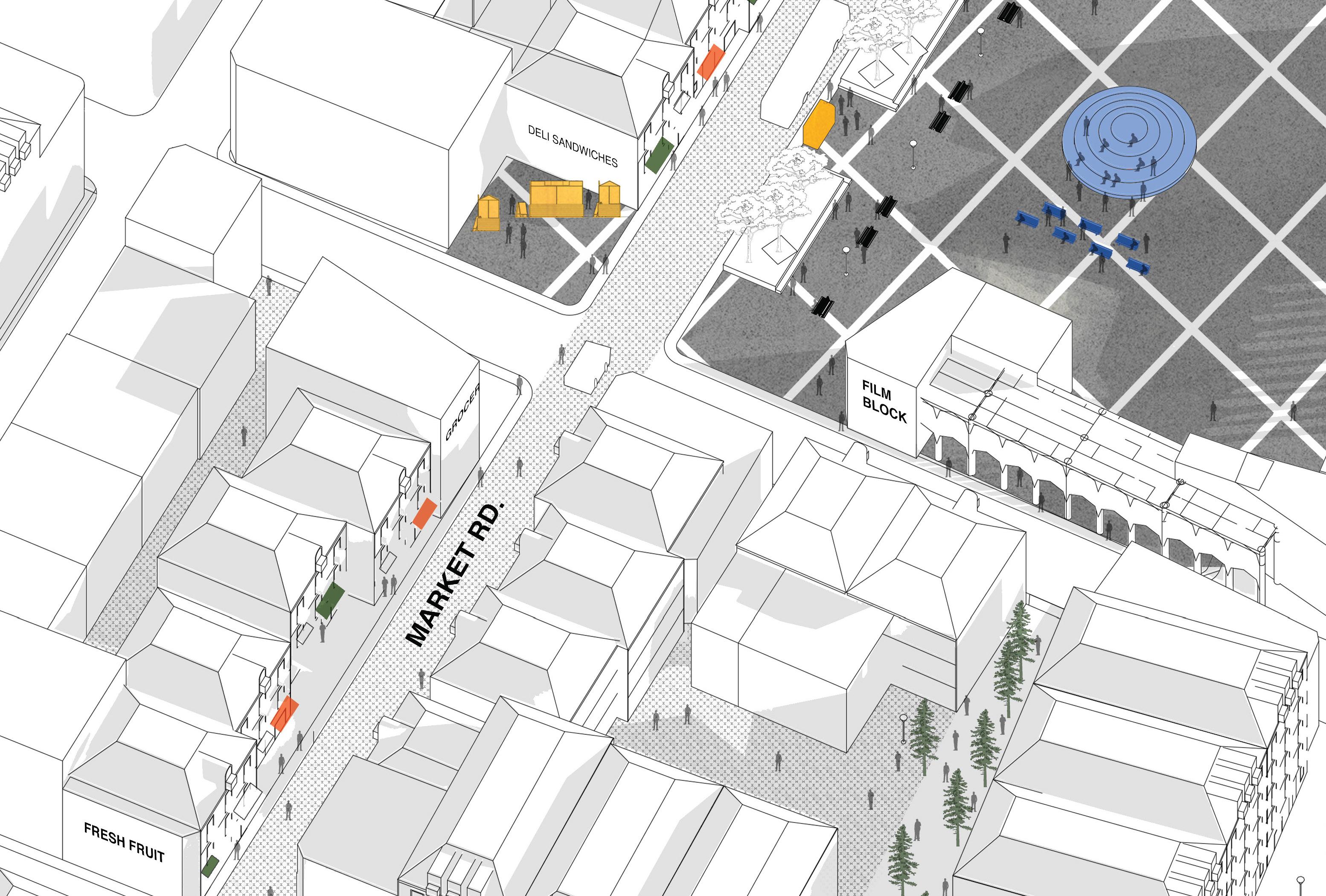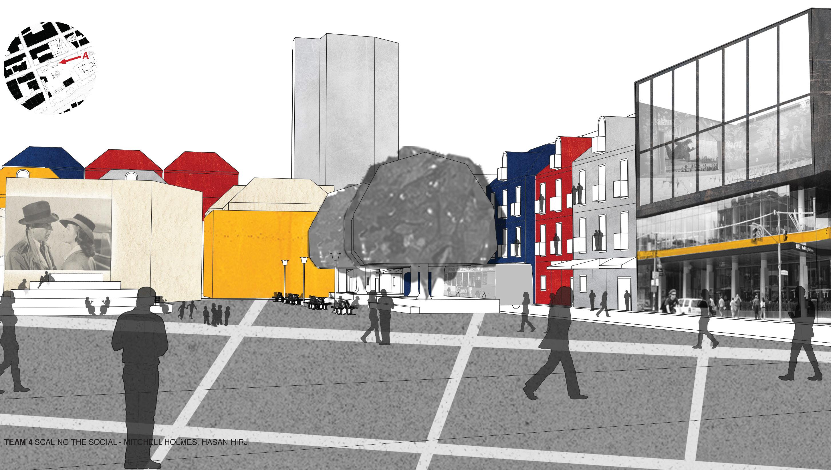[ 2.36 ] Axonometric of focus site plaza showing imagined public life.