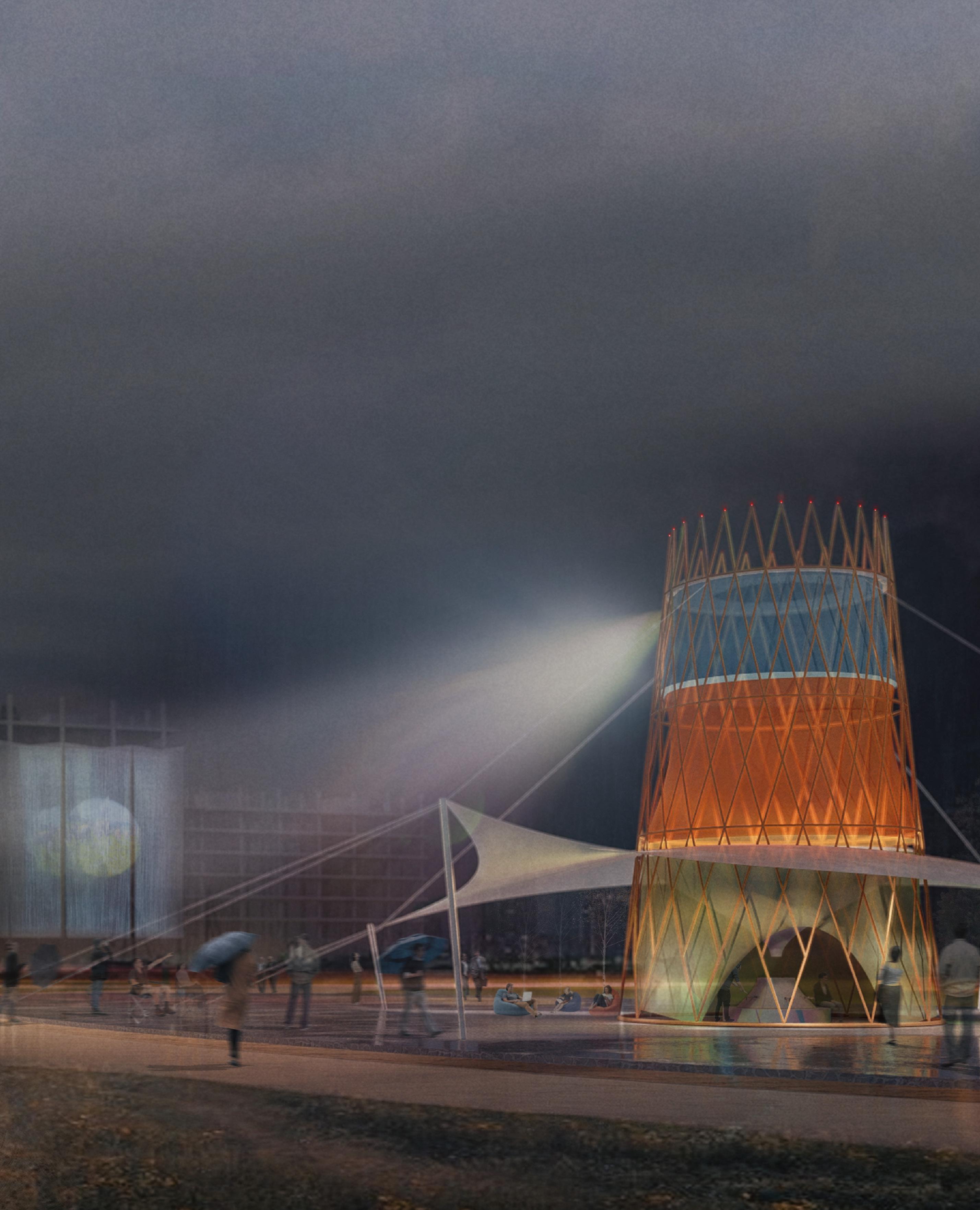 The 70-acre site located in Tirana, Albania, is slated for redevelopment as part of the city’s plans for high-end architecture and a park. However, this redevelopment poses a threat to the informal settlements located on the site. In response, this project seeks to provide livable and recreational spaces for the current residents through tactical architecture interventions that address water insecurity, lack of shelter, and insufficient promotion of activism. The design approach is intentionally minimal and non-permanent to maintain the residents’ livelihoods while allowing for adaptability. The project features several ‘Warka Water’ structures, strategically placed as nodes that connect different programming on the site. These structures also serve a community market, which offer an additional venue for activism through light projections that raise awareness by projecting images onto the construction sites. By prioritizing the needs of the current residents and their communities, the project uses architecture as a tool for activism. The creation of recreational and social spaces is expected to foster a sense of community and belonging while supporting the residents and enabling them to thrive amidst the planned redevelopment of the area.