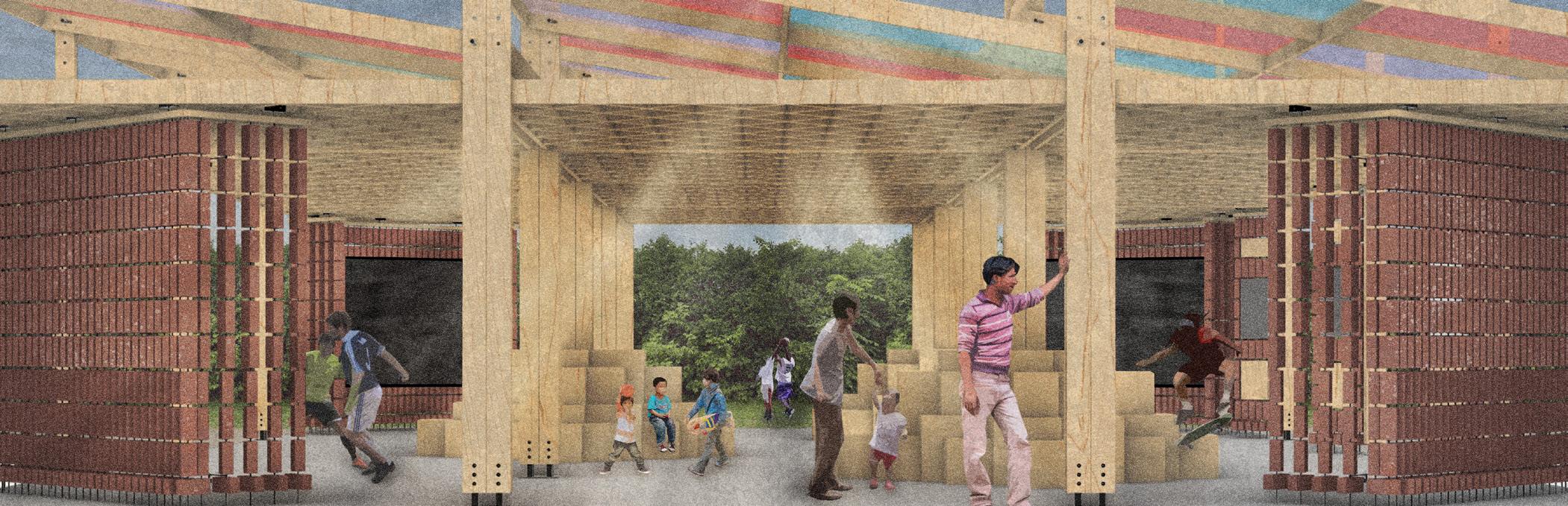 Playspace is meant to encourage the gathering and interaction between all ages. It combines gathering spaces with structure to play, climb, and hide behind, blurring the lines between what serves young children, teenagers, adults and seniors. The space is a moldable place that can be used for whatever is needed at any given day.