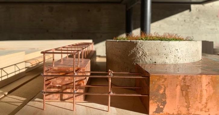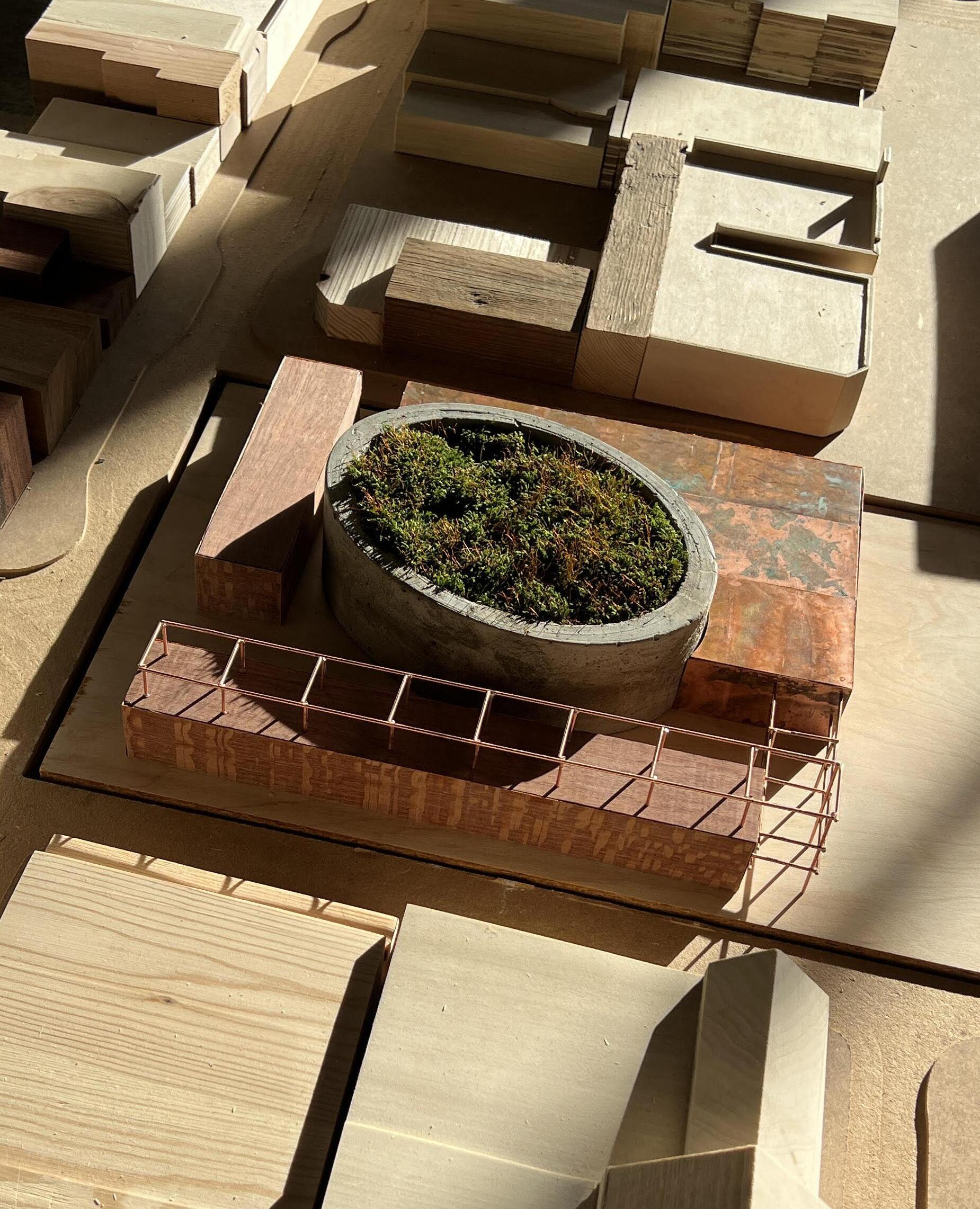[ 5.13 ] Physical model composed of living moss, oxidized copper, lacewood, and concrete.