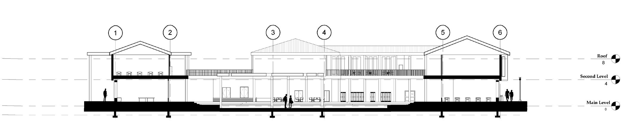 The hopping steps throughout the site develop not only a game amongst young children, but establish a connection between the existing playground and new gathering space. The covered multi-level seating is placed intentionally to allow visual connection between those seated and the play spaces, for ease of supervision of younger ones. The